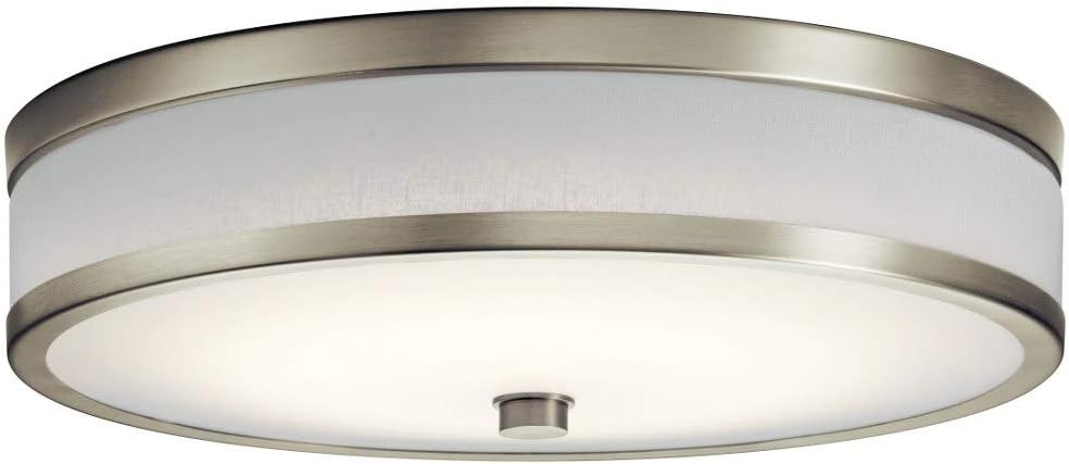 The Pira collection 12" LED flush mount features sleek lines and smooth edges to create a soft look and relaxed ambience, enhanced by a Brushed Nickel finish. A unique Wood Linen or White Vinyl shade and tinted glass with painted linen adds instant intrigue and sophistication in any home setting.