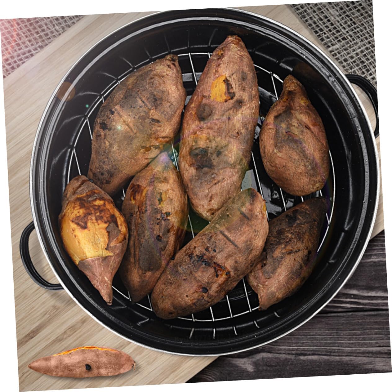 Package Include 1 x Roasted Pot 1 x Lid 1 x Net Rack Characteristics -Material: Cast Iron cooking -Size: 30.00X26.00X20.00cm/11.79X10.22X7.86inch Roasted Corn Container -Color: Black basket -Uniform heating, heat preservation and energy saving and no coating insulated. -Keep food from rolling and sliding with delicate and design Roasting Pot. -Wear bottom design, heat uniform and wear , save worry and effort electric. -This roasted pot is carefully selected materials, smooth edges without burrs food. -Easy to heat and heat evenly, the food as a whole is easier to heat and shorten the cooking time, and the oil temperature is uniform and not easy to smoke bbq pot.Goods Informationnon stick pot Stronger stability, healthier and more .Flue Gas Pot The pot body is made of food grade cast iron, the surface is of coating, uniform heat conduction, heat storage and good temperature control performance