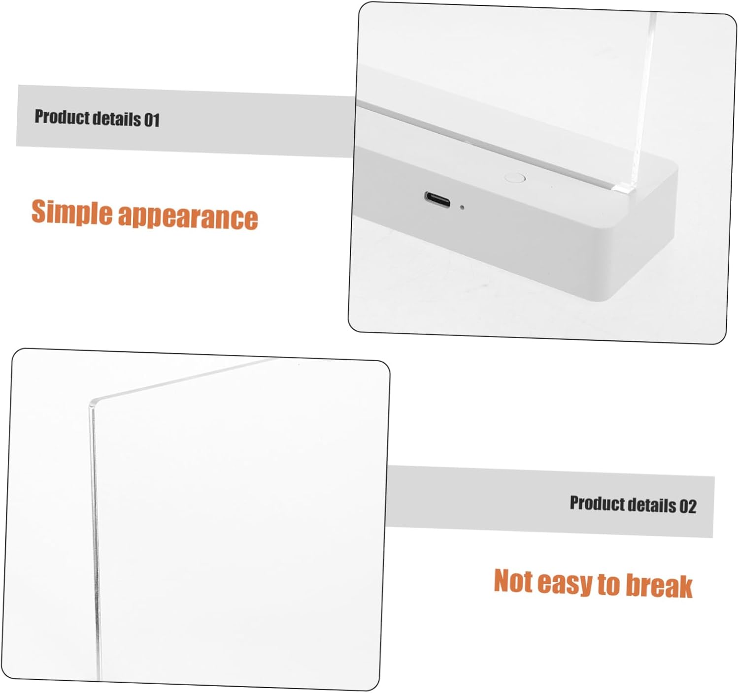 Package List 1 x Acrylic board 7 x pens 2 x cleaning cloths 1 x self sealing bag 1 x charger 1 Features - : the illuminated design captures attention, making suitable for visually like bars, cafes, or retail stores painting board -Easytoupdate surface: the erasable design allows quick modifications, making ideal for displaying or messages drawing board -Compact and practical: lightweight and design fits into tight spaces, making a for small businesses or temporary setups lighted writing board for -Color:Transparent drawing message board -Glowinthedark feature: transparent acrylic with lighting ensures clear visibility, even in dark environments, enhancing nighttime usability glow drawing board -Size:35.00X20.00X3.00cm/13.76X7.86X1.18in lighted board for drawing -Material:Acrylic, cloth light up bulletin board -Rechargeable convenience: desktop charging provides flexibility in placement, ensuring the board is for use in various settings writing boardGoods Descriptiondesktop message board Its transparent surface and vibrant lighting make for brainstorming, teaching, or playful doodling.small memo board Easy to use and maintain, serves as a practical tool for expressing ideas or sharing information in a visually appealing way. memo display This light-up drawing board is creativity and communication