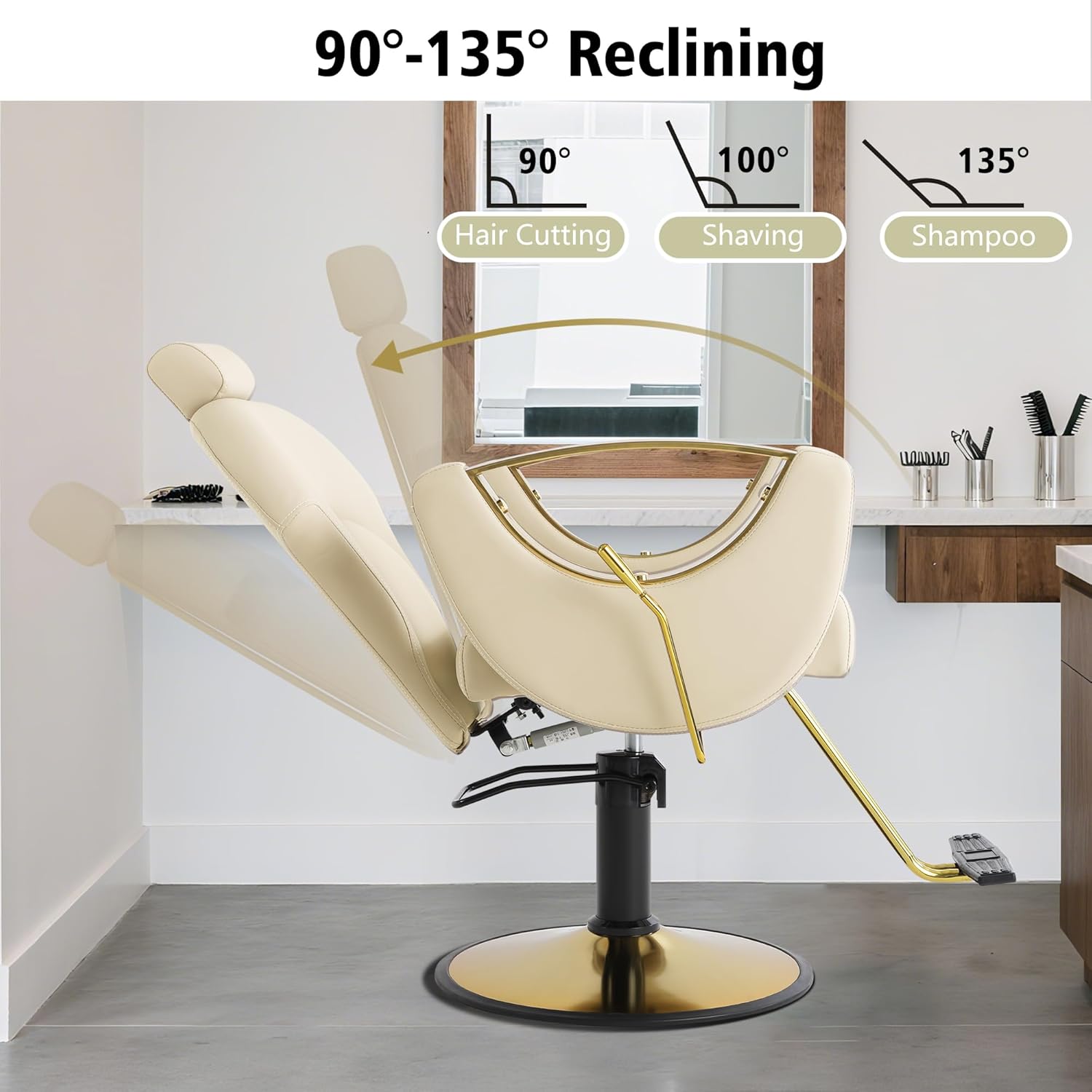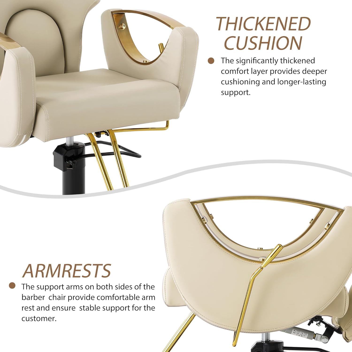 Are you tired of ordinary barber chairs that fail to provide comfort and style? Step up your salon game with our exceptional barber chair, designed to elevate both the aesthetics and functionality of your salon space.Our reclining barber chair, crafted with utmost precision to deliver an unparalleled experience to both barbers and clients. But it's not just about the looks – our hairdressing chair is built to excel in performance too. They'll appreciate the thick seat cushions and adjustable headrest, allowing them to fully relax while receiving top-notch salon services. The salon chair's smooth recline mechanism and robust hydraulic system offer seamless adjustability, enabling precise positioning for barbers. No more struggling with awkward angles or compromising on the quality of your work. This barber chair enables you to master your craft and deliver outstanding haircuts with ease. Durability and longevity are key features of our styling chair. Made with premium materials that withstand the test of time, this investment will serve your salon faithfully for years to come. Whether you run a bustling salon or a small barbershop, our chair is designed to endure heavy usage and daily wear, ensuring it remains an indispensable asset in your salon business. Order now and elevate your salon to the next level with our professional hairdressing chair. Experience the difference it can make in your salon's success!