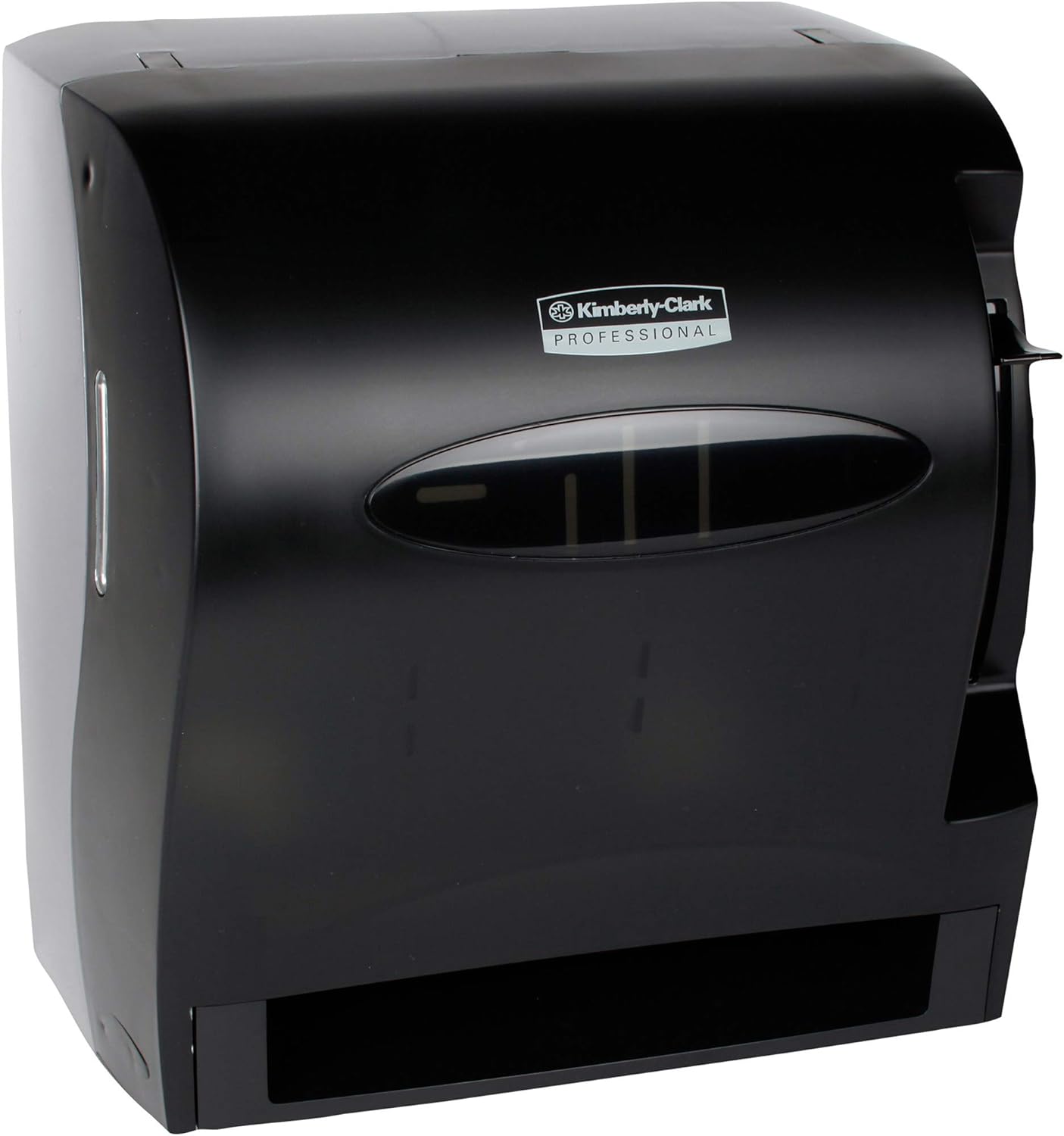 Roll towel dispenser features an automatic feed that allows easy loading using just one hand. Translucent, smoke-colored plastic design lets you quickly see inside so you know exactly when a refill is needed, without having to open the dispenser. Made of a high-impact plastic, this durable dispenser also includes a metal key-operated lock for added security.