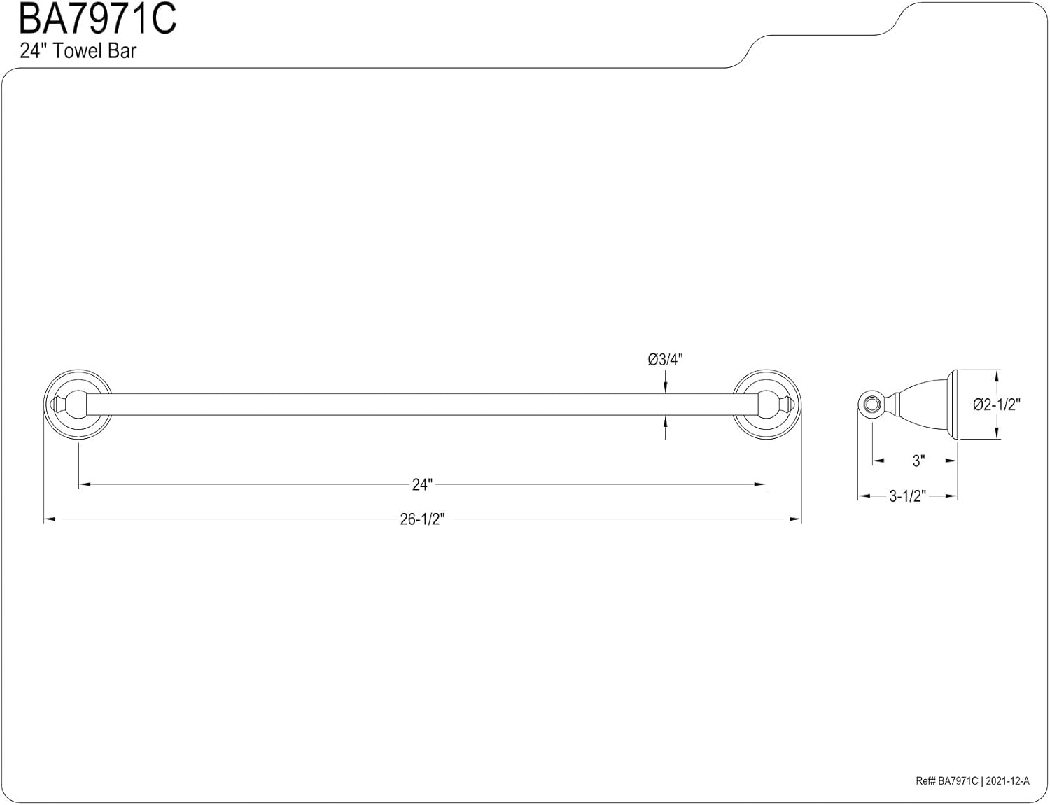 Product Description Hang your towels in style with the chic appeal of the Kingston Brass English Vintage Towel Bar. Available in multiple finishes, this 24" bar can quickly become an essential piece of your bathroom design. Pair with other accessories from the English Vintage Collection. From the Manufacturer Aesthetic, Functional, Invites Visual Appeal. Design is Perfectly Co-Ordinated to Match the Accessories. Easy installation. Durable Brass Construction assures a lifetime performance. Timeless Design offered you with a solution for both premiere home decor and legendary durability. All products come with a generous product warranty. Many Hardware Accessories are made to match faucets to complete your home into a designer estate.