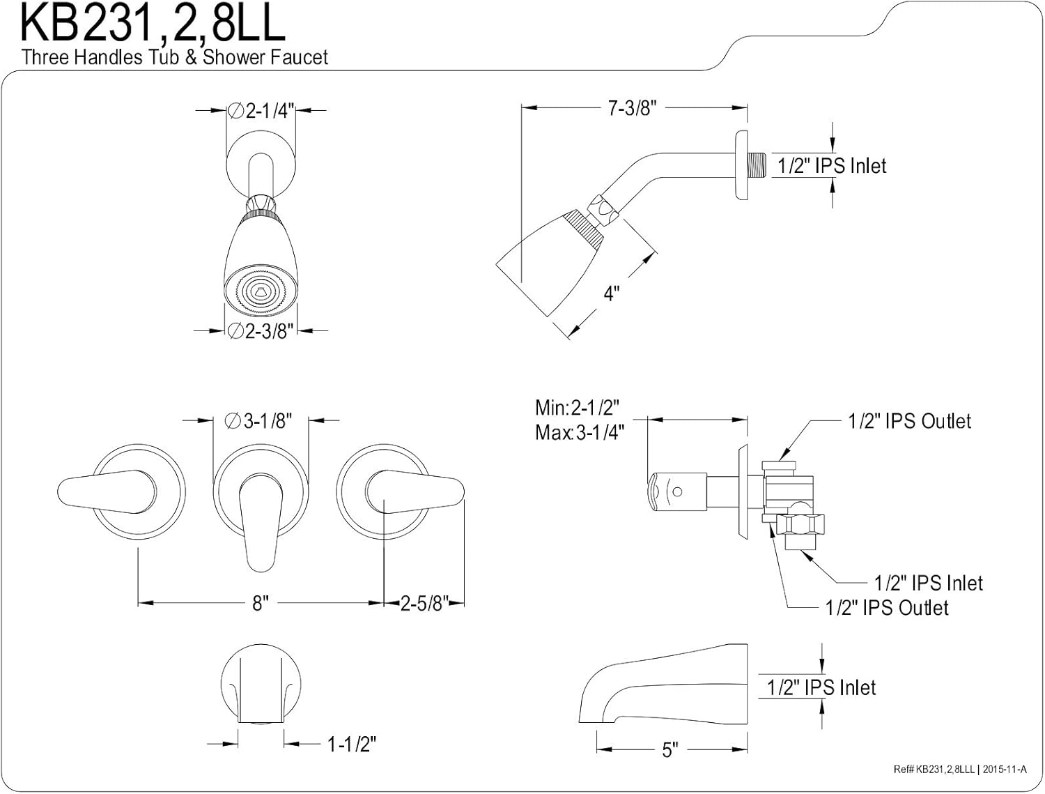 Product Description Kingston Brass KB232LL Magellan Tub and Shower Faucet with 3 Legacy Lever Handle, Polished BrassKingston Brass KB232LL Magellan Tub and Shower Faucet with 3 Legacy Lever Handle, Polished Brass Features: Solid Brass Water Way Construction Max 2.0 GPM/7.6 LPM at 80 PSI 6" Reach Shower Arm 1/4 Turn Pressure Balanced Washerless Cartridge IPS Connections Polished Brass Finish California and Vermont compliant Legacy Lever Handles Premier Finish California and Vermont compliant * Image shown may vary by color, finish, or material From the Manufacturer Featuring with Unique Design Elements, Kingston Brass Faucets are in a Timeless Appeal as well as Reliable Performance for Today's Bathrooms. That Makes Showering a Pleasant and Enjoyable Experience for Users. Price offerings are available at a Very Competitive and Affordable Level that makes purchases irresistible. Different Designer Styles of Handles and Finishes are Available. Timeless Design offered you with a solution for both premiere home decor and legendary durability. All products come with a generous product warranty. Many Hardware Accessories are made to match faucets to complete your home into a designer estate.