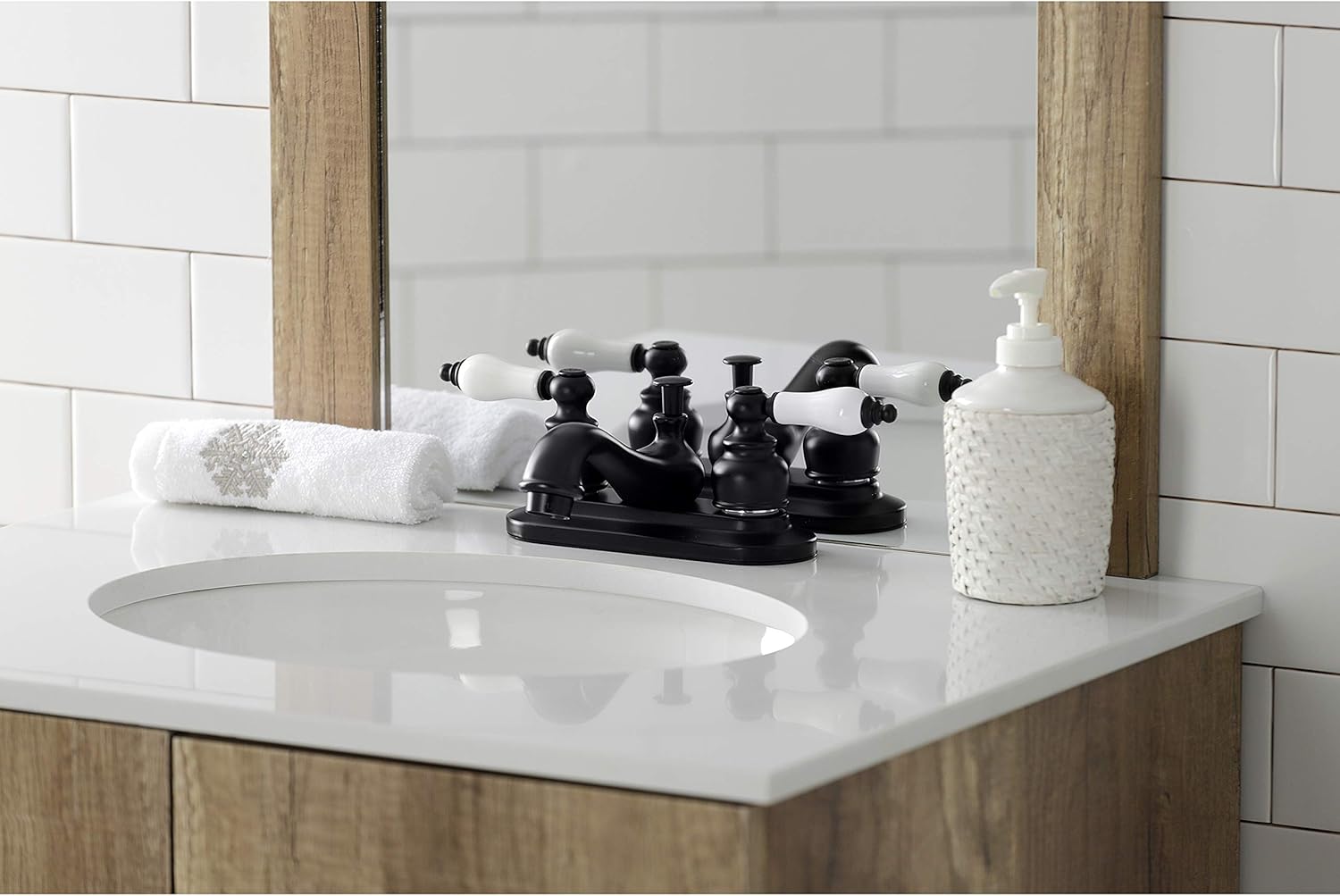 Classical artistry from the late 19th Century to early 20th Century is mirrored beautifully within this faucet's traditional charm. Centerset bathroom faucets are ideal for smaller bathrooms and feature an easy 3-hole installation. The Restoration 4-inch centerset bathroom faucet and its featured sturdy brass construction and premium matte black finish are guaranteed to glamorize your home's ensemble for years to come. Bring this faucet to your home to offer a touch of old design and exquisite detail. A matching finish drain is also included.