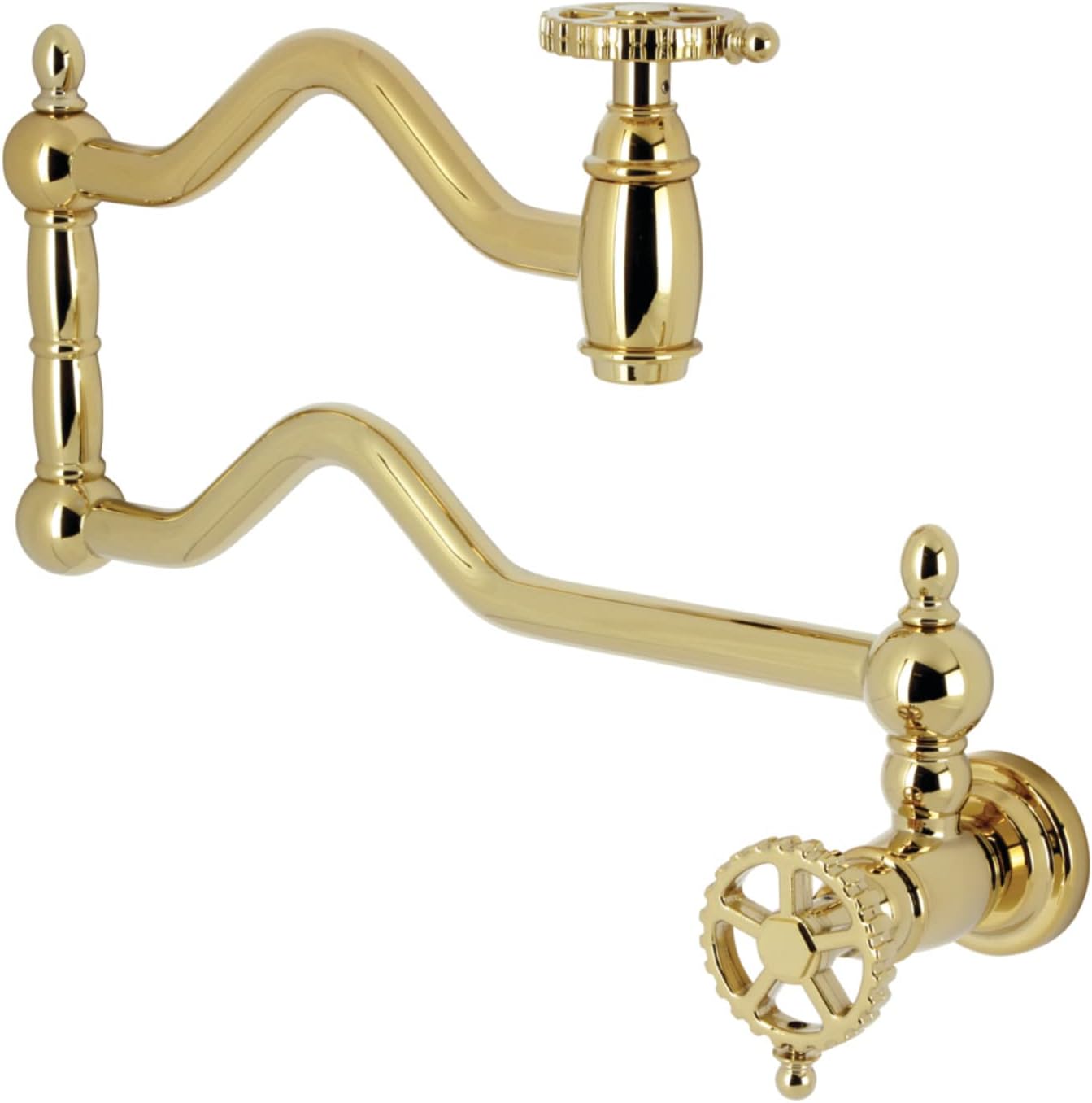The exquisite design of this faucet tastefully flatters the elegant architecture of traditional homes with its fine detailing. The foldable swing arms of this pot filler allow for extendable reach of up to 24-1/8" of length and provide long-lasting function due to their sturdy brass construction. As an excellent tool to quickly, easily, and stylishly fill pots, eliminate strain on your joints. Pot-fillers are useful gadgets placed directly above the stove, providing easily accessible water. Additionally, the dual handles prevent unwanted water spillage while enhancing the traditional theme.