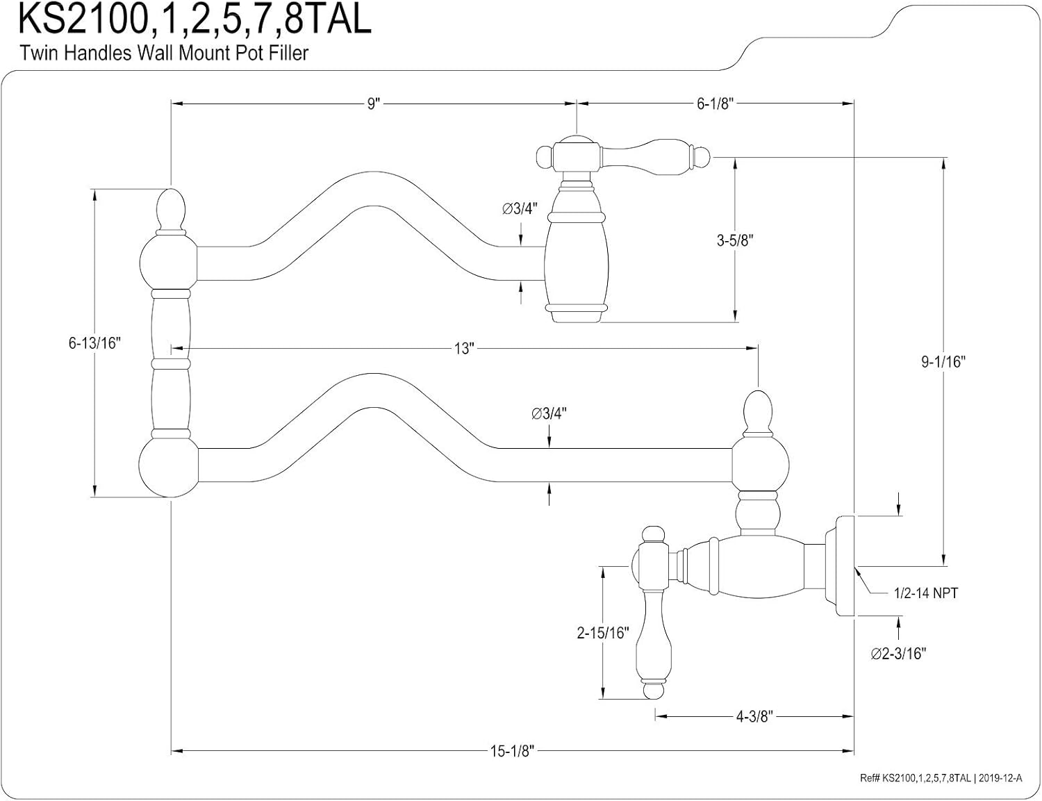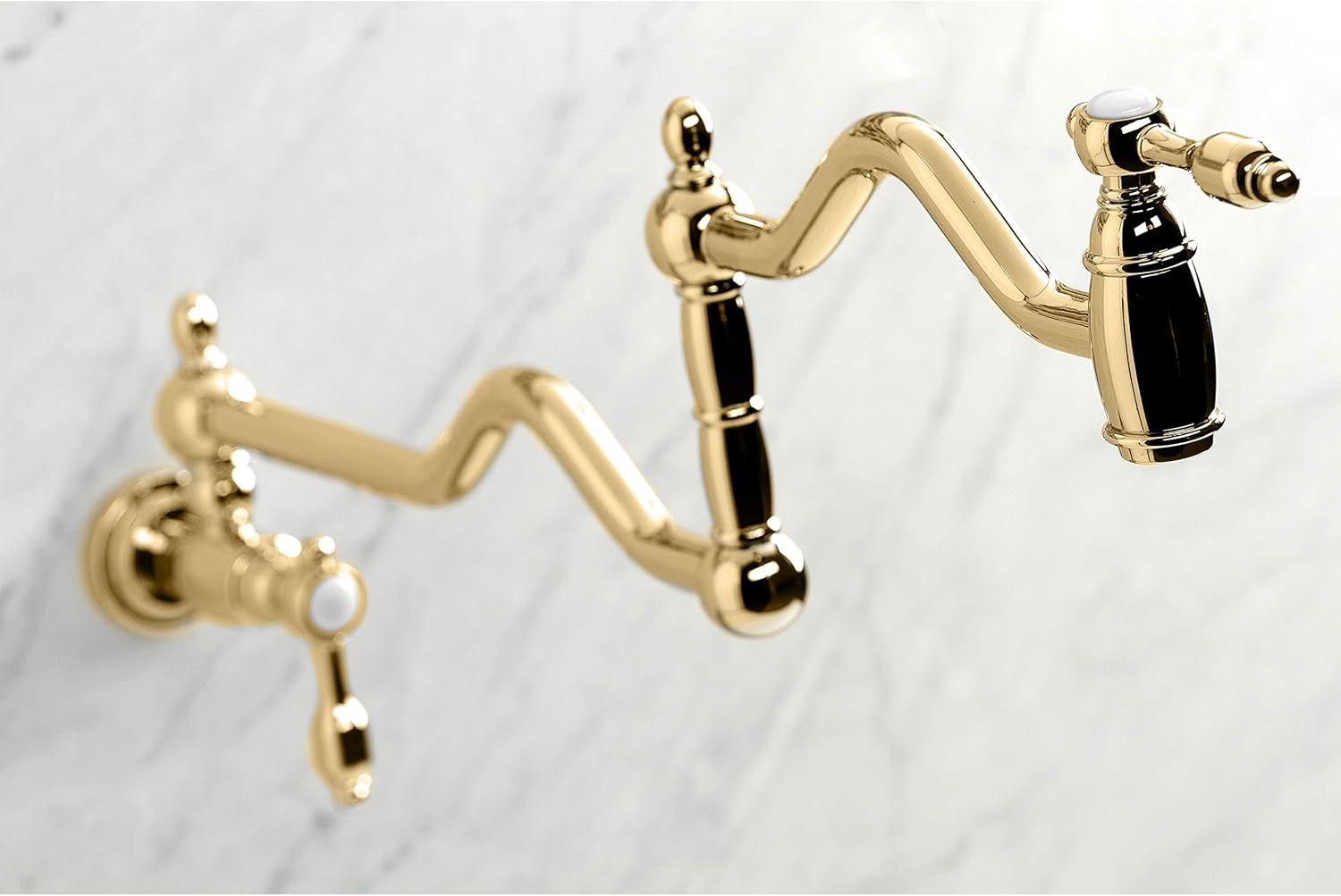 Offering a nod toward the past, this faucet is beautifully inspired by the vintage elegance of mid-19th Century design. As an excellent tool to quickly, easily, and stylishly fill pots, eliminate strain on your joints. Pot-fillers are useful gadgets placed directly above the stove, providing easily accessible water. The foldable swing arms of this pot filler allow for extendable reach of up to 22" of length and provide long-lasting function due to their sturdy brass construction. Additionally, the dual handles prevent unwanted water spillage while enhancing the traditional theme.