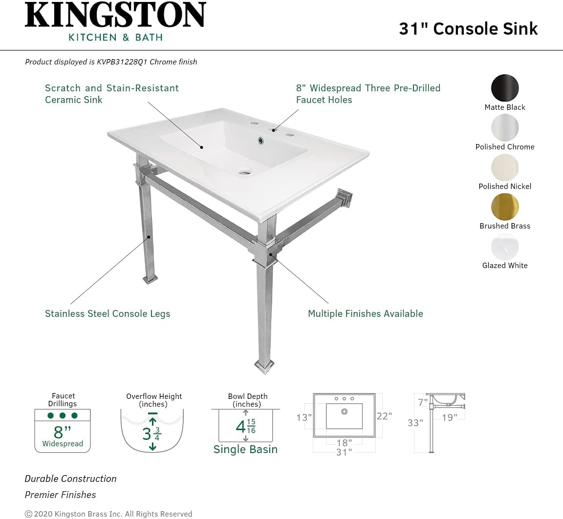| Included Components | Sink Basin;Console Legs;Mounting Hardware |
