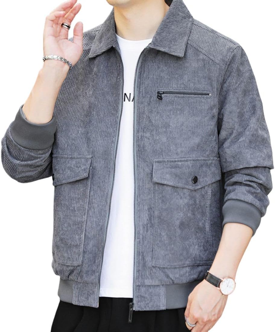 Package include: Womens_outerwear x 1 pieceMaterial: PolyesterBullet Point:1; ✦ Lapel, zipper up, easy to wear on and off. Perfect gifts for your boyfriend, son, husband, and yourself. All items are US size.2; ✦ The main material of mens fall jacket is polyester, corduroy fabric, not easy to fold, clear texture, bright color, advanced texture. It is an essential collocation item in men 's wardrobe.3; ✦ Zipper up with two flip pockets for carry-on items. The hem, sleeves have rib tightened, not hurt by the cold wind when you are outdoors. Pure color, fashion, trendy.4; ✦ Men casual long sleeve coat can be paired with solid color t-shirts, sweaters, jeans, jogging pants, etc. Any casual match. Brings you a brand-new experience.5; ✦ Zip up jacket is perfect for Spring, Fall, Winter, casual, daily life, sports, outdoor, vacation, school, work, office, Christmas, party, dating, hip-hop, streetwear.NOTE: 1. Please note that fit for any particular size will vary from person to person. If you're unsure about the fit of a particular item or size, please contact our Customer Services team to discuss the most appropriate size.2. There may be slight colour difference due to the brightness of the computer screen or the lighting levels