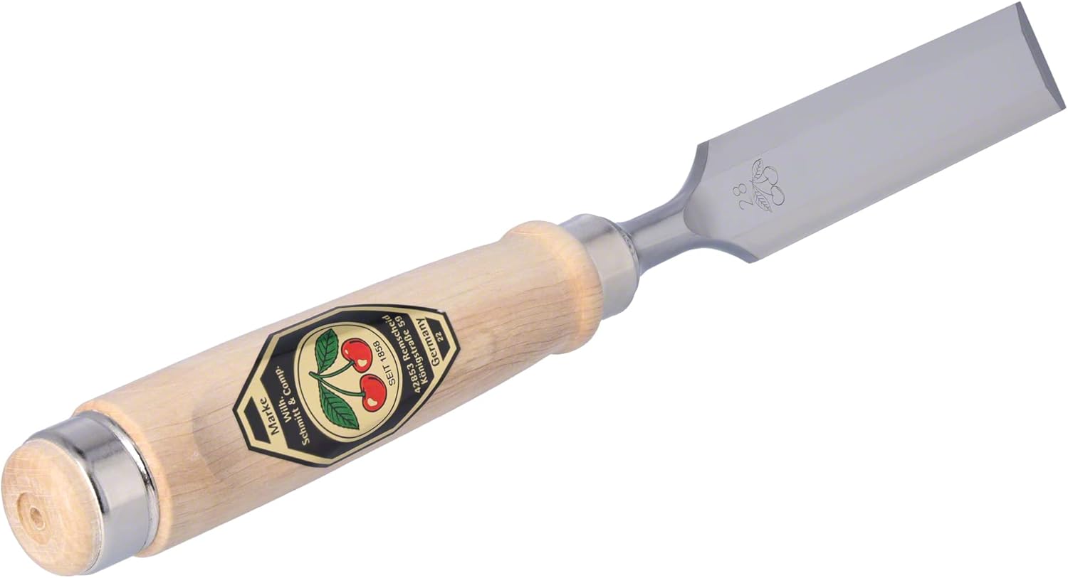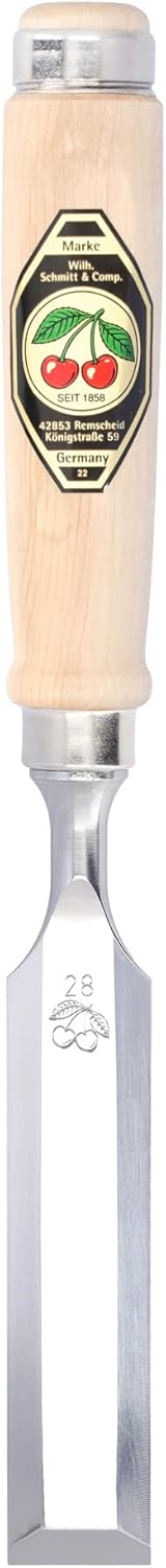 Firmer chisel, short length, light pattern, beveled edges, with flat hornbeam handle. Since 1858 - over 155 years family owned - the company Wilh. Schmitt & Comp. GmbH & Co. KG in Remscheid produces high quality woodworking tools with factory brand ››TWO CHERRIES‹‹, the symbol for the full maturity of the products.