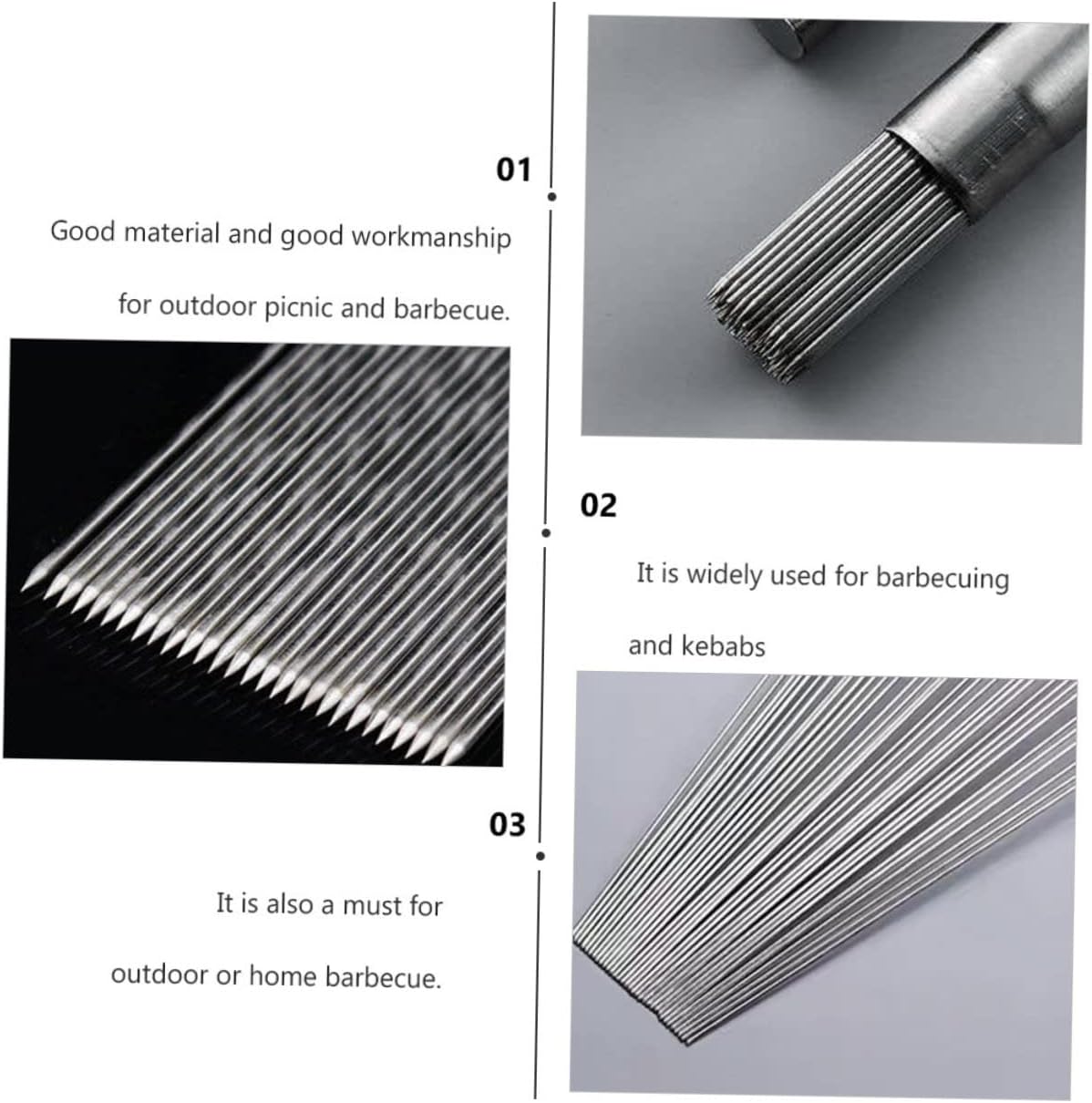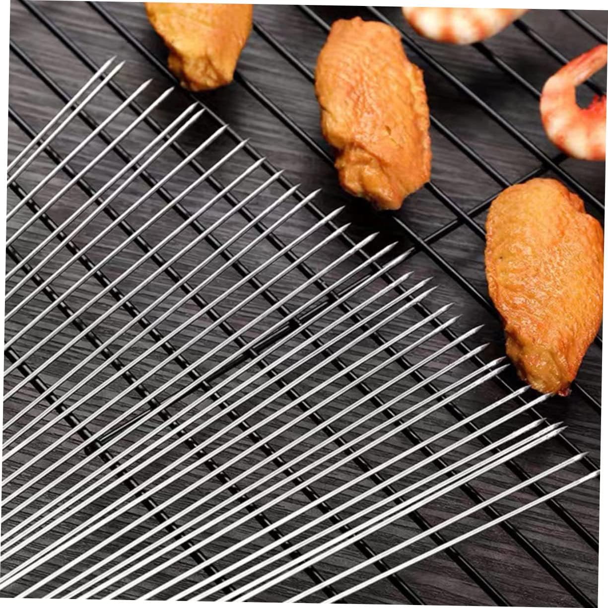 Package Include Skewers Features - Color: Silver Stainless Steel Barbecue Stick. - Material: 304 Stainless Steel Stainless Steel Skewers. - Rotate these skewers without worrying about losing food on the grill Picnic BBQ Tools. - Allow you to use searing high heat, and cooking quickly and more evenly, from the Reusable BBQ Sticks. - These are must-have barbecue tools for every picnic and barbecue Grilling Skewers. - These skewers stainless steel are smooth, durable, and extra thick and are designed to hold of food, and fit on our rack Portable Skewers. - Made with which is quite endurable Stainless Steel Barbecue Bar.Goods DescriptionPortable Skewers They are suited for big chunks of meat or vegetables.Stainless Steel Barbecue Bar Turn these skewers without worrying about losing food.Barbecue Sticks Tool These skewers provide a secure, stable hold on the food as it cooks, plus they infuse more heat into the center of the food