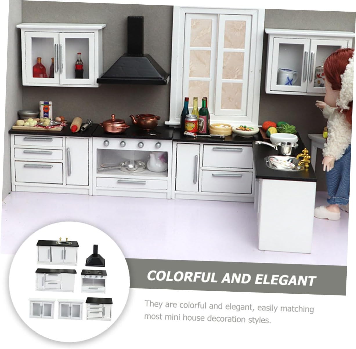 Package Include 1 x Mimi Cooking Bench 1 x Mimi Mimi Long Plane Table 1 x Mimi Short Plane Table 2 x Mini Hanging Cabinets 1 Ventilator Characteristics - Kitchen Ventilator Size: About 7x4.5x6.2cm/2.76x1.77x2.44in - Short Plane Table Size: About 8.4x5x6.1cm/3.3x1.97x2.4in - Color: Black -Product Info:Wooden mini furniture - Material: Wood - Water Channel Size: About 12.4x5x6.1cm/4.88x1.97x2.4in - Long Plane Table Size: About 12.7x5x6.1cm/5x1.97x2.4in - Hanging Cabinet Size: About 8.9x3x6.3cm/3.5x1.18x2.48in - Cooking Bench Size: About 8.9x3x6.3cm/3.5x1.18x2.48in - This model looks really which with design and excellent workmanship Doll House Furnishings. - Special designed for a mini house, creating a romantic and lifelike circumstance Mini Scene Furniture. - They are colorful and elegant, easily matching most mini house decoration styles. - A great and accessory for who love DIY mini house Mini Wooden Furniture. - Adopts pure handcraft skill, made of wood material, very durable and delicate.Goods DescriptionMiniature Gas Stove Mini design is lightweight, it is suitable for mini house layout decoration.Wooden Mini Furniture Your small home will have a new look.Mini Furniture Meanwhile, increase the art for your doll house.Mini House Ornament It's made of wood material, it is mini house collection decoration