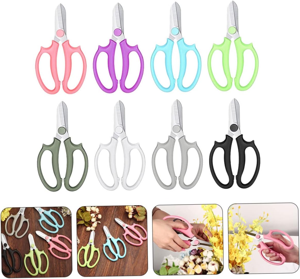 Package List 8 x Scissors Features - Size: About 18.00X10.00X1.50cm/7.07X3.93X0.59in professional gardening scissors - Material: Plastic, stainless steel pruning tool for - A wonderful garden pruning shears for trimming branches, hedges, orchards, and small trees, etc Fruit Tree Trimmer. - Enjoy gardening with your family with this convenient pruning scissor, it's a nice helper orchard clipper. - They are strong enough, not easily deformed or broken, and bud leaves trimmers. - ColorAssorted Color Scissor - The garden scissor non-slip handle is lightweight and fits various sizes of hands, so it's convenient to use prune scissor for gardening. - Suitable for pruning flowers and small plants, gardening, bonsai, and plant maintenance Multifunctional Shears.Goods InformationFruit Branch Pruner Portable and easy to operate, really a wonderful and convenient gardening tool for choice.bud leaves trimmers Suitable for trimming branches, small trees, etc. Arrangement Shears The product is a garden pruning scissor, adoption of and durable material