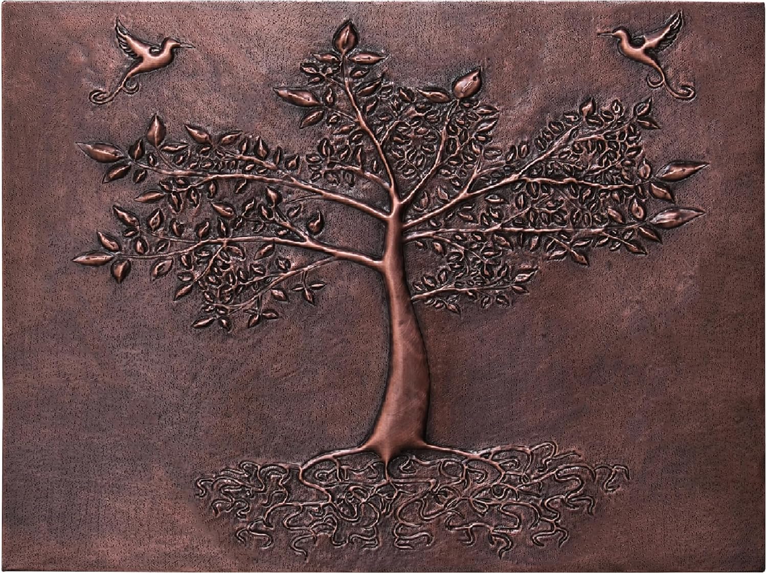 Kitchen Backsplash, Hummingbirds Flying Around a Tree With Roots Copper Backsplash, Custom Copper Backsplash Panel, Handmade Copper Backsplash Tile, Indoor Outdoor Wall Decor (Copper)