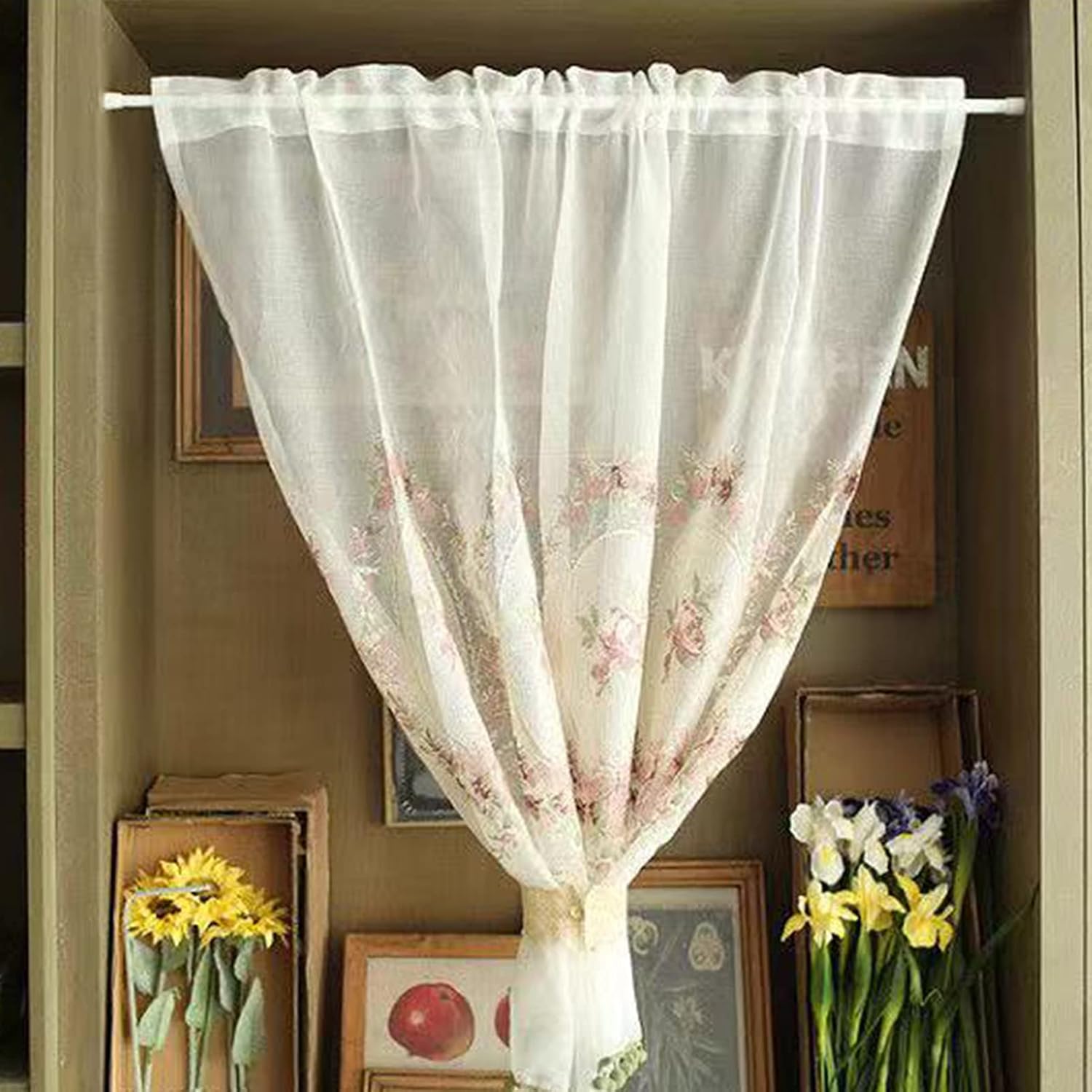 ★★★ Country-style kitchen curtains, transparent café curtains in partial shade for the kitchen, make your home more elegant. ★ Features and Benefits - Very good material and very well made, beautiful, fashionable and unique, add a vivid atmosphere to our life. - Partial shading, inviting ambient light and ensuring privacy. - The curtains create a new visual experience and a fresh feeling for your room or kitchen. - Decorate your windows and doors, used as cafe, kitchen curtain, door curtains, bathroom, small window curtains, window curtains, partition curtains, etc. - It can be used for family and friends gatherings, Christmas, Thanksgiving and other Christmas decorations. - The rod pocket design can be conveniently hung on the standard curtain rod. ★ specification Item type: cafe half curtain - Material: polyester, feels soft - Fabric dimensions: WxH (width x height): 60X100cm / 23.6X39.3inch, 70X100cm / 27.5X39.3inch, 100X100cm / 39.3X39.3inch, 100X125cm / 39.3X49.2inch, 100X160cm / 39.3X63inch, 150X100cm / 59X39.3inch, 150X125cm /59X49.2inch,150X160cm/59X63inch,200X100cm/78.7X39.3inch,200X125cm/78.7X49.2inch,200X160cm/78.7X63inch,250X100cm/98.4X39.3inch,250X125cm/98.4X49.2inch,250X160cm/98.4X63inch,250X160cm/98.4X63inch - Package: 1 piece of curtains ★ Notes 1. The labeled size is tiled, not folded. 2. No accessories, the price is just one piece. 3. It is recommended to fold the curtains for use. The width of the curtains should be 2 to 2.5 times wider than the window for the best effect. 4. Do not wash it with other clothes or items that may damage the curtain.