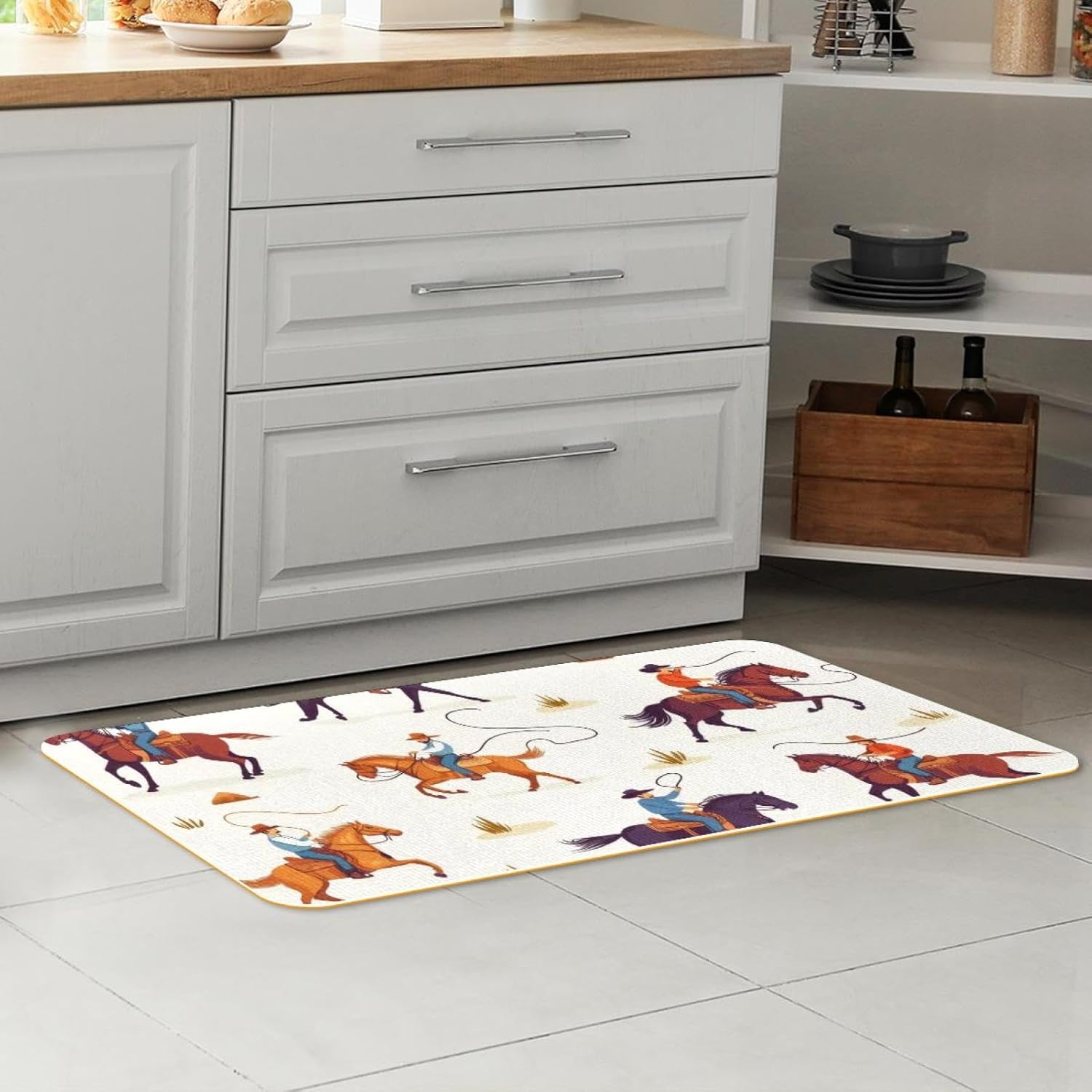 Kitchen Rugs Non Slip SpecificationSize: Available in two sizes, Large kitchen floor runner rug: 40x150cm/15.7x59in, Small kitchen floor runner rug: 40x75cm/15.7x29.5in; thickness 5mmWeight: 1000gMaterial: Polyester surface with bottom TPE material, the bottom is impermeable.Shape: RectangularPackage: Two kitchen floor mats cushioned anti fatigue in different sizesWashable: no fading, no shrinking, no deformationClassic Printing & Dyeing: single-sided printing, realistic exquisite patternsVersatile Use: Kitchen mats and rugs, wash room floor mat, hallway runner rug carpet, laundry room rug, indoor entrance doormats, bathroom rug, bathtub mat, nursery rug pad, door welcome mat, entryway rug runner, can be placed in any doorway.Function·Anti-slip, providing more safety when working in the kitchen·Absorb water, oil, and liquid, to prevent penetration into the floor and protect the floor·Keep the kitchen dry and hygienic·Standing for a long time does not hurt the legs, relieves leg fatigue·Ideal decoration for homeWarm TipsDue to the large size of the absorbent kitchen runner rug for in front of sink, the non skid kitchen runner rug need to be folded during transportation. If you find that the kitchen carpet has creases after you receive it, please lay the floor rug flat. The creases will disappear automatically after 1-2 days, or the creases can be removed by cleaning and drying the door standing mat.100% after-sales GuaranteeIf you have any questions during the use of the kitchen runner rug for sink, please feel free to contact us, we will reply to you within 24 hours.