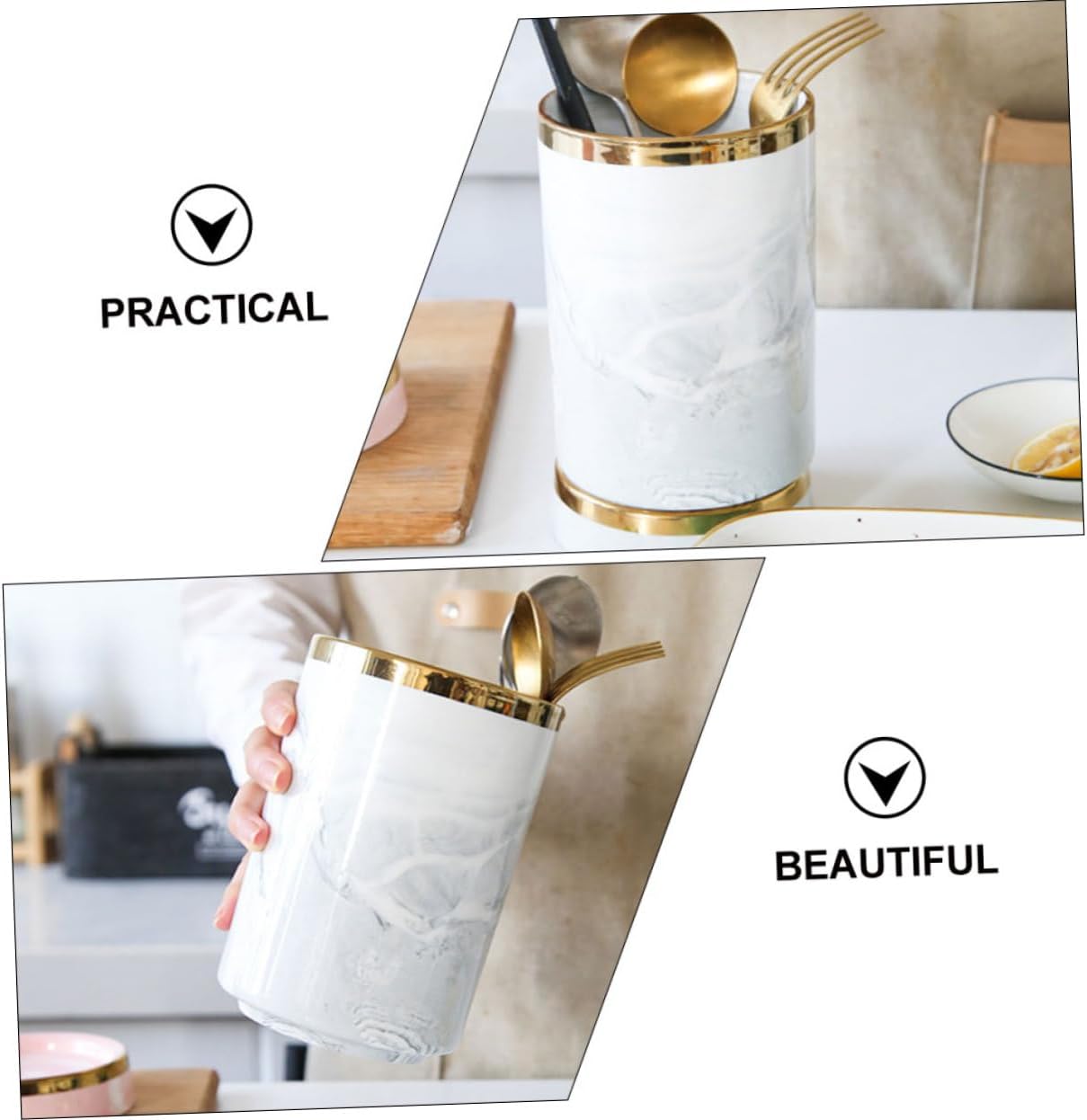 Package Include 1 Utensil Holder 1 x Pedestal Features -Size:17.50X10.20X10.20cm/6.88X4.01X4.01in storage holder -Material:Ceramic white utensil holder -Color:Light Grey kitchen utensils holder -With its vintage and simple style, this desktop cutlery holder fits easily into any kitchen and on any table counter decor. -The kitchen utensil holder is for storing all your everyday kitchenware essentials like spoons, spatulas, forks, whisks chopsticks organizer. -The chopsticks organizer is well-made of and sturdy material, and for long-lasting using time ceramic utensil holder for kitchen. -The ceramic utensil holder is essential tool in the kitchen, which can neatly organize your tableware kitchen bucket. -This simple cutlery holder is suitable for home,hotel, restaurants, fast food restaurant, food store and other important places farmhouse kitchen accessories.Goods Descriptiontableware holder And this cutlery holderis and kitchen utensil for you.spoon holder Made of and , and healthy, this cutlery utensil holder can be used with confidence.tableware container This cutlery utensil holder can be used tostoring chopsticks, spoons, forks and other tableware