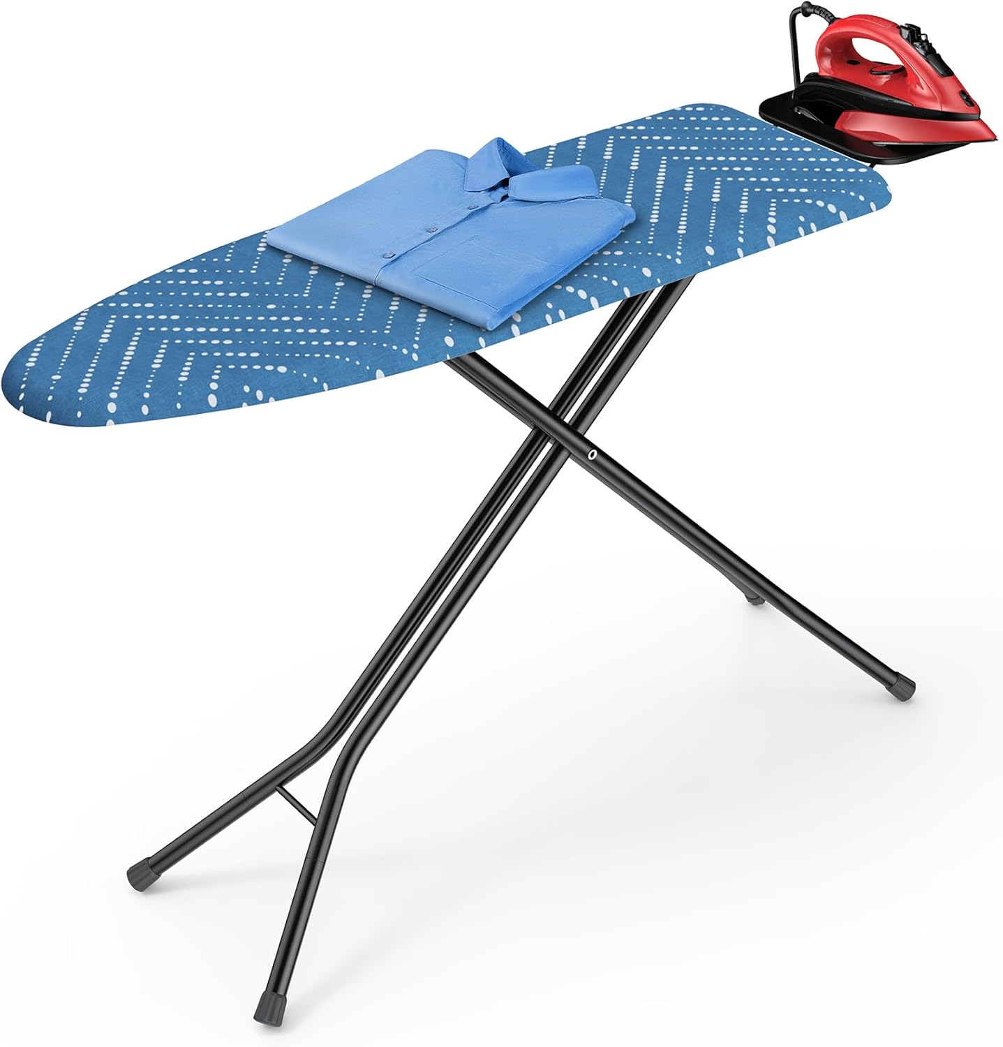 Searching for a foldable ironing board that fits small spaces? Kitsure is here to help! 1. This portable ironing board features a rust-resistant metal frame and a reinforced cross-leg structure that ensures excellent stability without wobbling. The non-slip foot pads enhance grip while protecting your floor from scratches. 2. The iron board cover resists concentrated heat, while a perforated base helps release steam, preventing moisture buildup. The heat-resistant iron rest allows you to safely pause during ironing without damaging your clothes. 3. With a 43" × 13" surface, this compact iron table offers generous workspace while fitting easily into small apartments or dorm rooms. The 7 adjustable height levels provide ergonomic comfort, and the safety lock handle keeps it securely in place. When not in use, simply fold it flat and store it away.