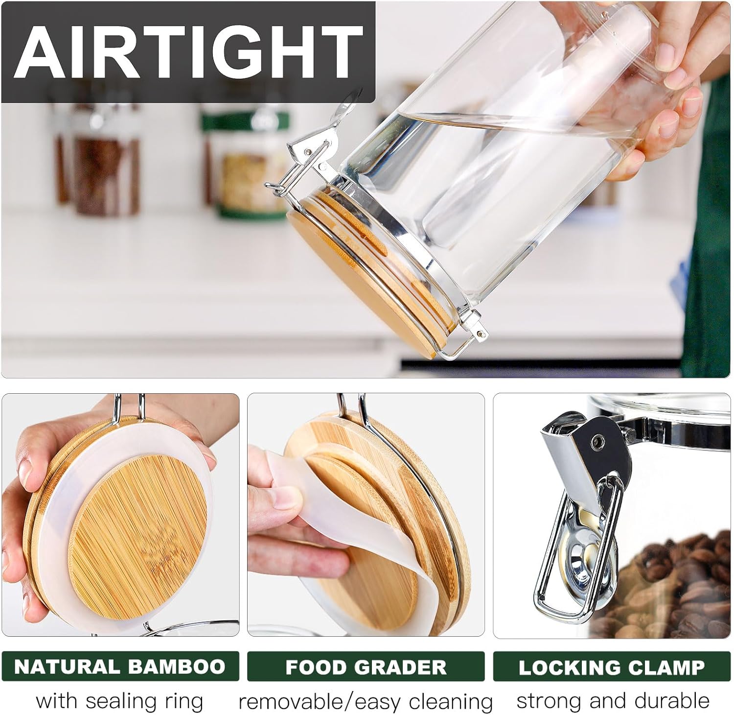 Welcome to Your Own Private Home Cafe Your morning coffee is more than just a drink; it’s a ritual. It’s the quiet moment before the day begins. But a cluttered countertop and stale coffee beans can quickly ruin that experience. At KKC, we believe your coffee station should be as inspiring as the coffee itself. That’s why we created the Ultimate 3-Piece Glass Coffee Canister Set with Bamboo Stand. We’ve designed a complete system that seamlessly blends elegant aesthetics with uncompromising functionality. Why This Set Belongs on Your Countertop: The Power of the Set: Unlike standalone jars, our complete set—featuring three generously sized 40oz (1200ml) glass containers, matching bamboo lids, dedicated serving spoons, and a unified bamboo display tray—instantly upgrades your space. It transforms chaotic bags and mismatched tins into a cohesive, professional-looking coffee bar setup. Freshness You Can Taste: We know how crucial freshness is to coffee lovers. The airtight silicone seal on our natural bamboo lids rigorously protects your delicate ground coffee, premium whole beans, aromatic loose leaf teas, and essential sugar from moisture and air. Every scoop delivers maximum flavor. Designed for Daily Joy: The included wooden spoons are the heroes of your morning routine. No more searching drawers. The bamboo stand keeps everything perfectly organized and instantly accessible, making the act of preparing your daily brew a smooth, satisfying experience. Perfectly Sized for Your Favorites: The 40oz capacity is expertly chosen. It perfectly accommodates a standard 12oz to 16oz retail bag of coffee beans or a generous supply of sugar and tea, minimizing the need for constant refills while maintaining a sleek profile on your counter. Stop hiding your coffee in the pantry. Showcase it with pride. Add the KKC Coffee Canister Set to your cart and experience the difference of a beautifully organized morning.