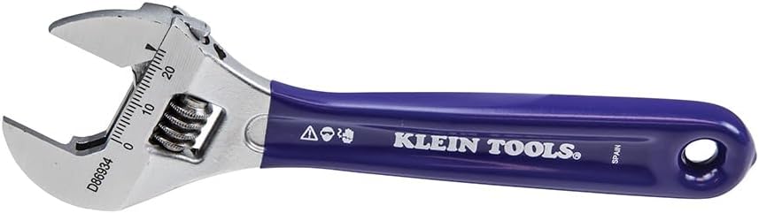 Manufactured for strength and durability, this handy 6-Inch wrench features 40-Percent slimmer jaws (than standard adjustable wrenches) and meets ASME 107.100-2010 standards for adjustable wrenches. Excellent for working in tight spaces and wrench over wrench applications such as gas lines, pumps, extension valves and motors. For more than 160 years, Klein Tools has manufactured premium-quality, professional-grade hand tools that deliver the performance, durability and precision needed to get the job done right. Our family of engineers, workers and craftsman continue to put six generations of expertise into every tool we create by using only the highest quality materials, superior workmanship, and keeping manufacturing as close to home as we can. Klein isn't just the name of our company, it's also our family name. And since we're an American company that's family-owned and family-run, you know you can count on us to be here tomorrow. Klein Tools doesn't just make great products, we make great products that stand up to the demands of the professionals who use them every day ... Since 1857.