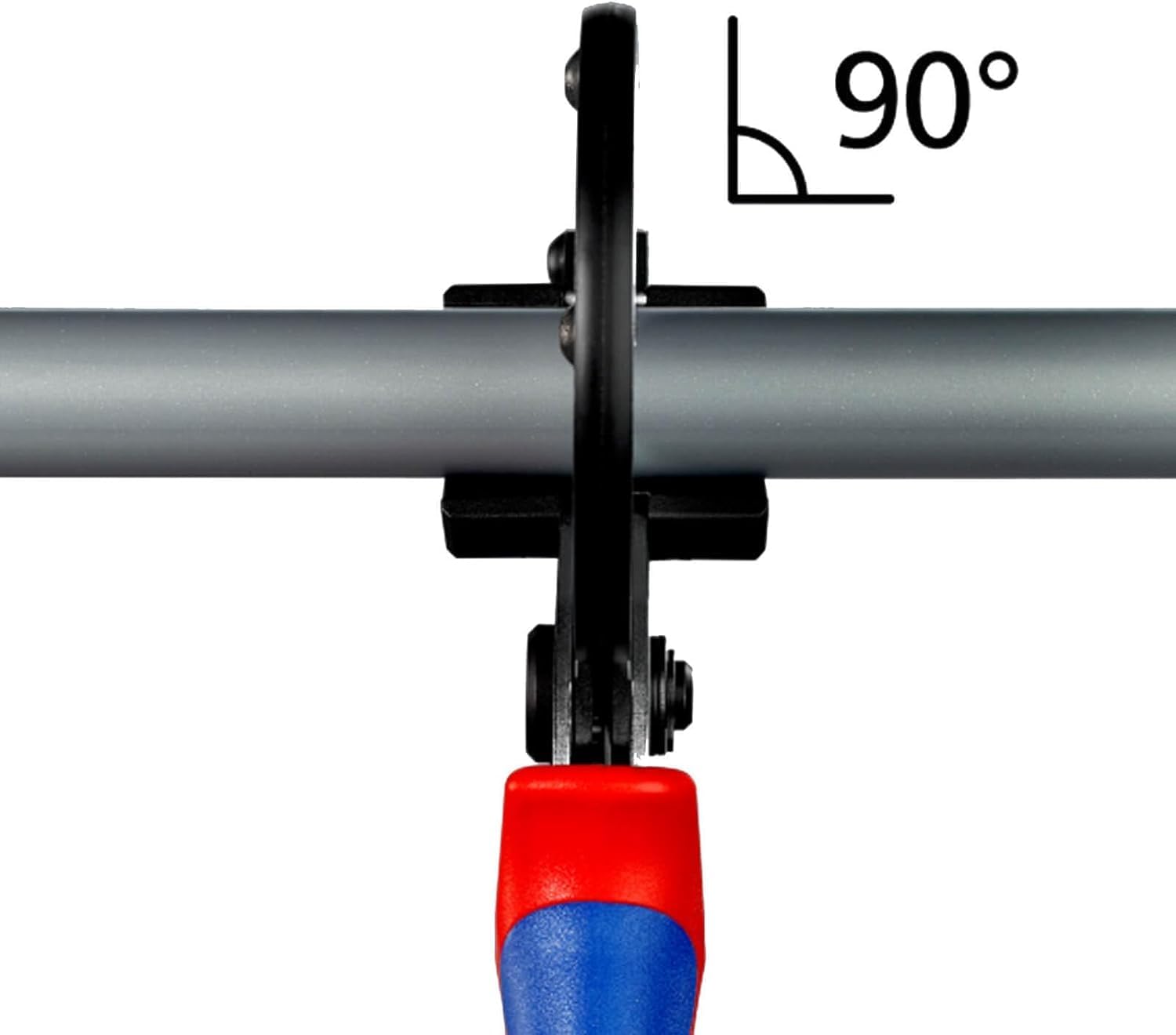 90 25 25 Pipe cutter for composite and plastic pipes Up to 60 Percent less effort: the freely rotating cutting wheel allows the pipe to be rotated with minimal friction when cutting. Optimum cutting results: the rotation allows the cutting wheel to penetrate the pipe effortlessly with minimal deformation. Wide plastic supports allow perfect right-angled cuts. Cuts aluminium composite and plastic conduit pipes more easily than conventional shears with a fixed blade. Also suitable for composite pipes with increased aluminium layer thickness (e.g. Geberit Mepla). For cutting composite and plastic pipes up to Diameter 26. Allows for very short correction sections. With locking mechanism for safe transport. With ergonomic multi-component handles. Spare cutting wheel available (Art. No. 90 25 25 E01).