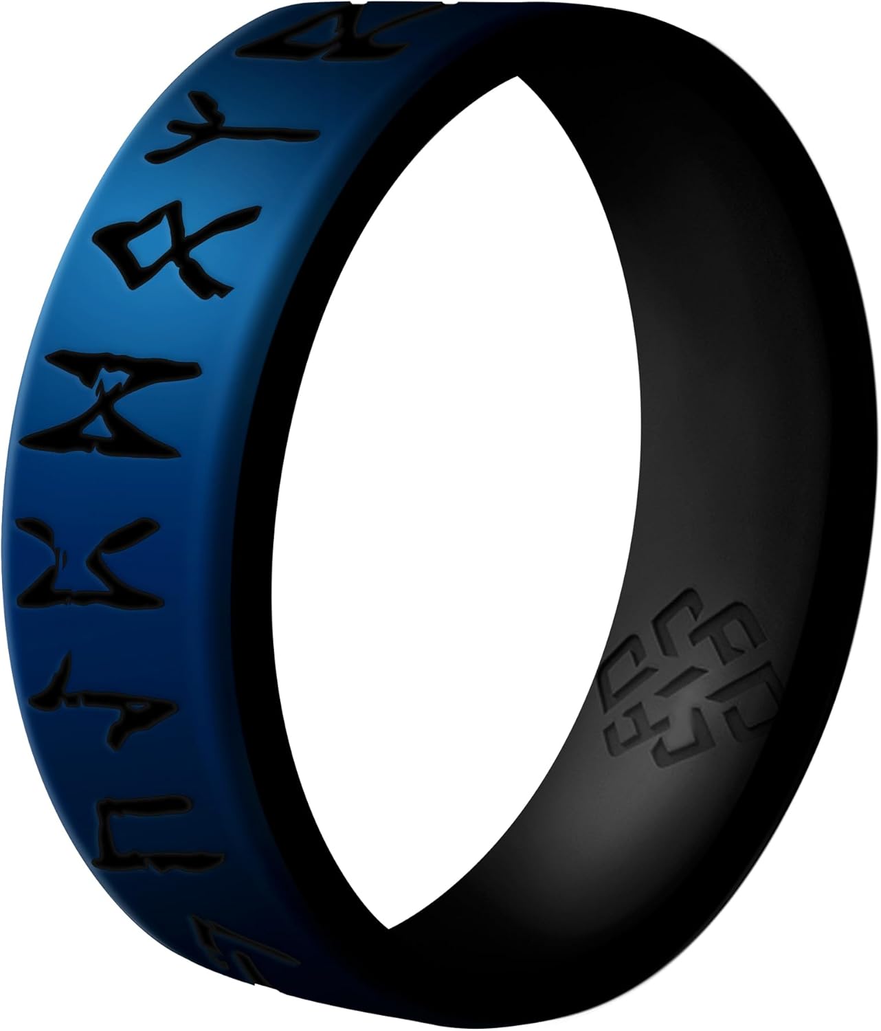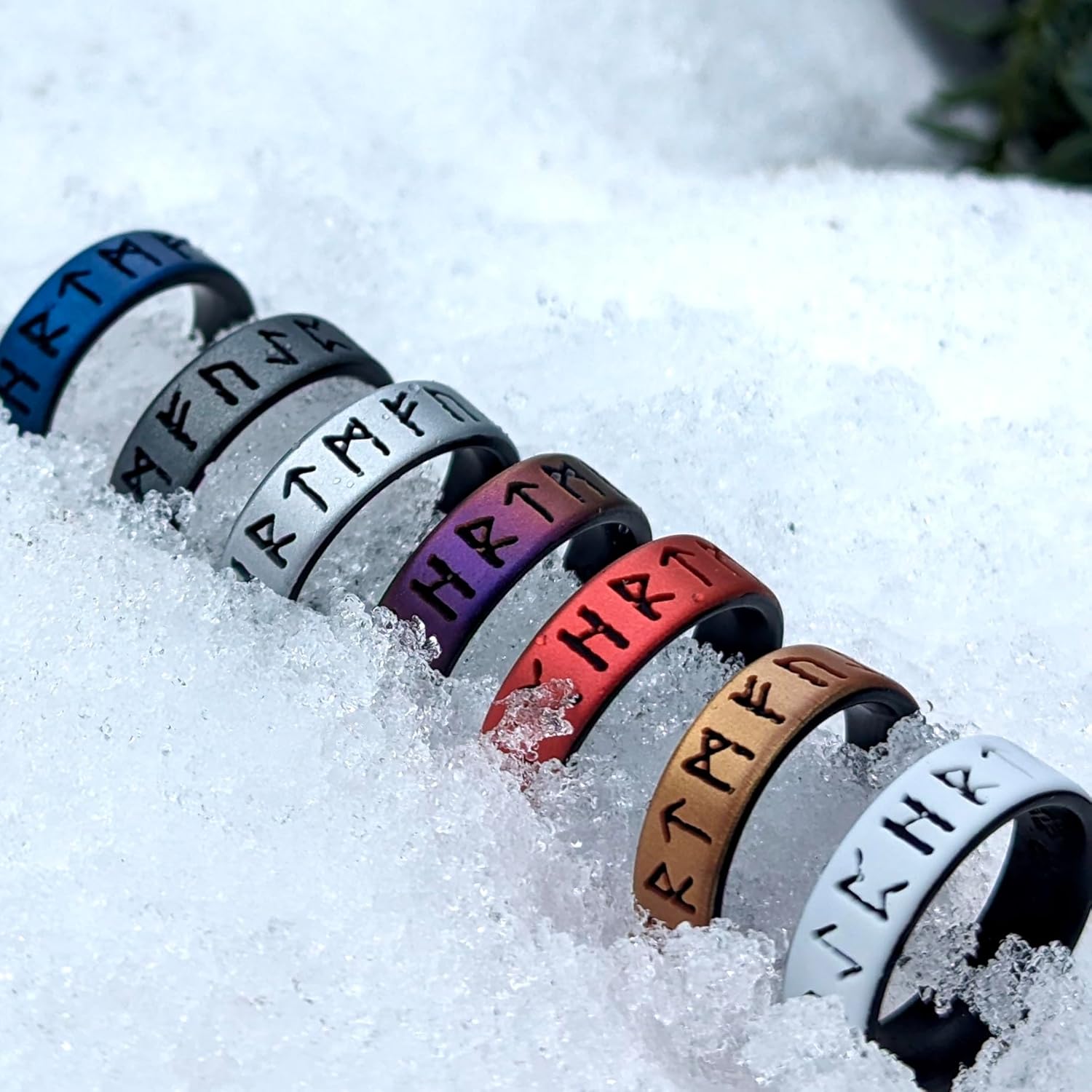 Knot Theory's Rune silicone ring is inspired by the wisdom of the Norse god Odin and the mystical power of the ancient runes. Crafted with durability, breathability, and comfort in mind, these rings are designed to withstand the rigors of your daily adventures, just as Odin endured hanging from the branches of Yggdrasil. Channel the ancient wisdom of the runes! Each runic symbol is believed to carry its own unique magic and power, empowering you with the ability to heal, protect, and conquer.