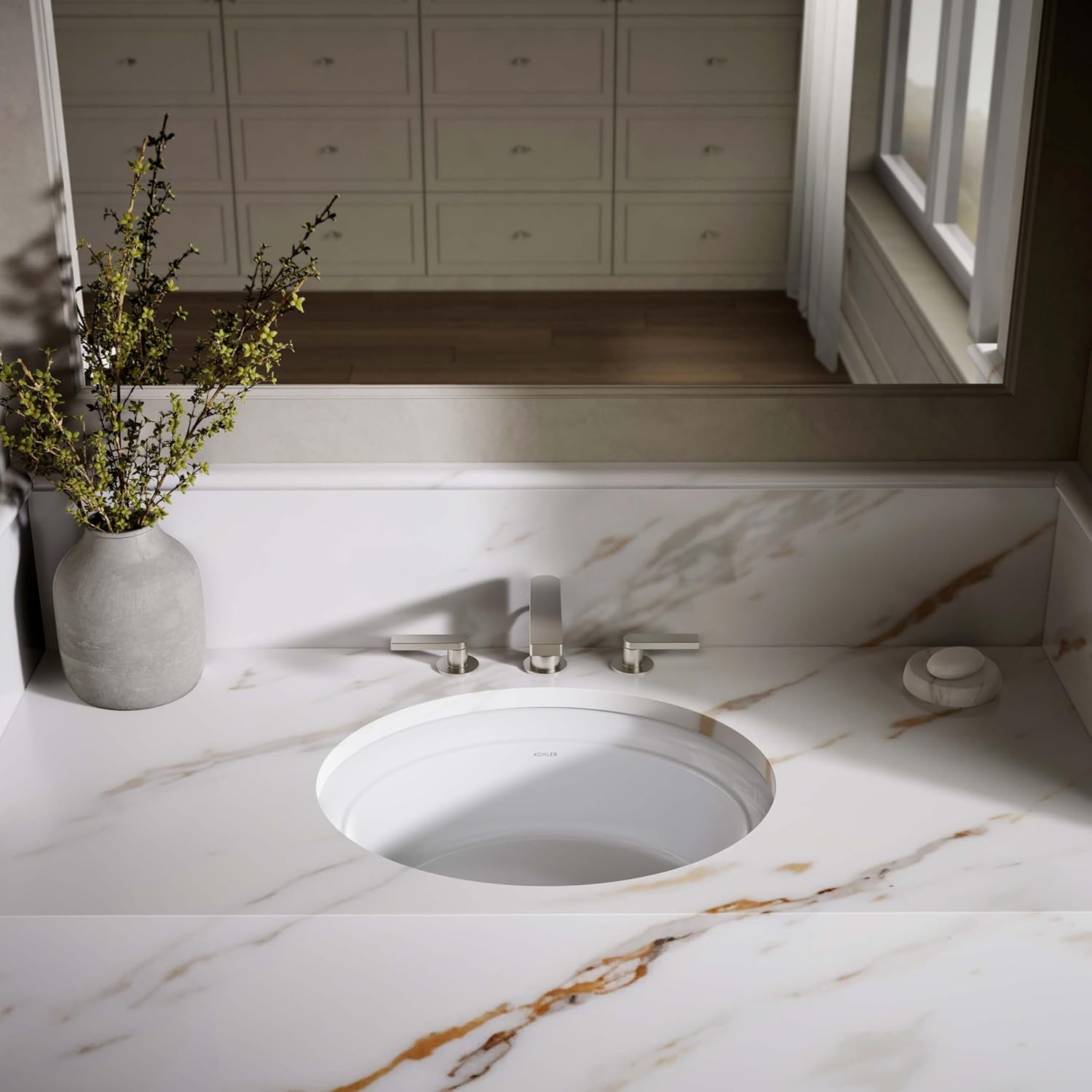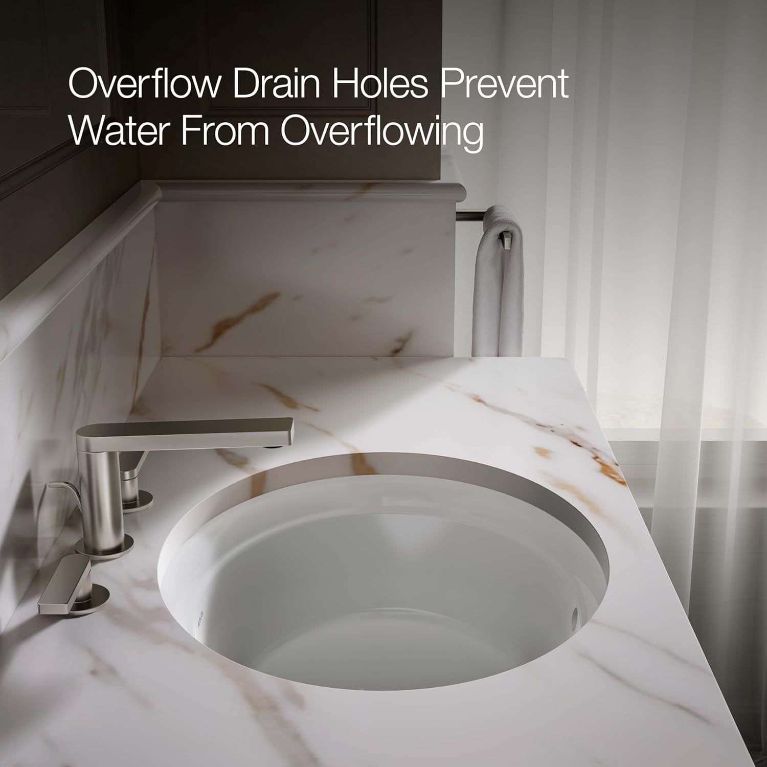 Inspired by the charm of turn-of-the-century homes, an KOHLER Artifacts bathroom sink is like a vintage treasure rediscovered and enhanced by the comforts of modern design. The sink mounts from underneath the vanity top, resulting in a more contemporary clean and uncluttered look. Pair this Artifacts oval undermount bathroom sink with other products in the Artifacts collection and create the bathroom space of your dreams.