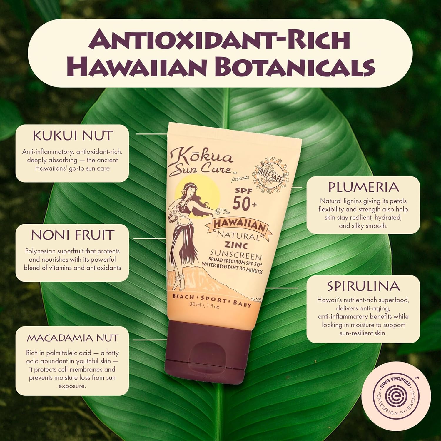 | Additional Features | Reef Safe, Vegan, Cruelty-Free, Hawaiian Superfoods, Biodegradable, Recyclable Packaging |