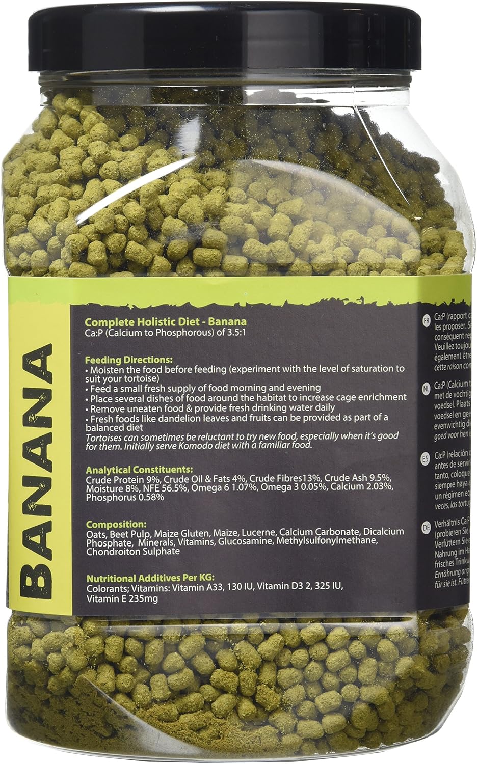| Additional Features | Unique Banana Flavor, Specific Calcium to Phosphorus Ratio (3.5:1) |