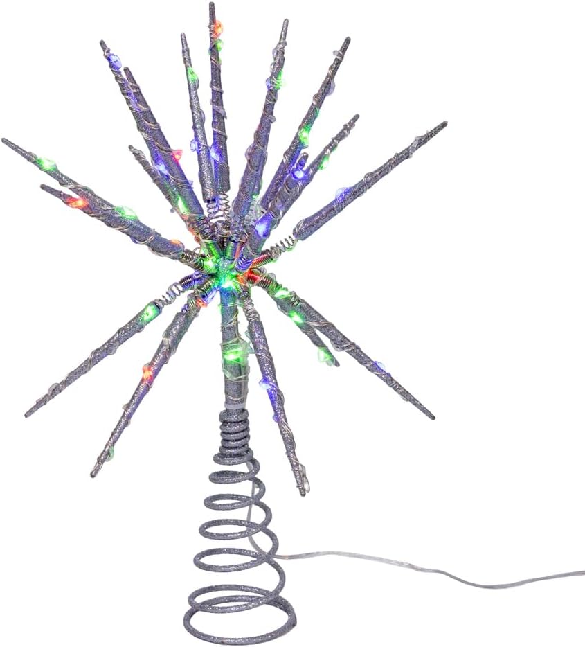 This lighted starburst treetop from Kurt Adler is designed to sit securely atop a tree or seasonal display, creating a radiant focal point with multicolor illumination and modern styling.