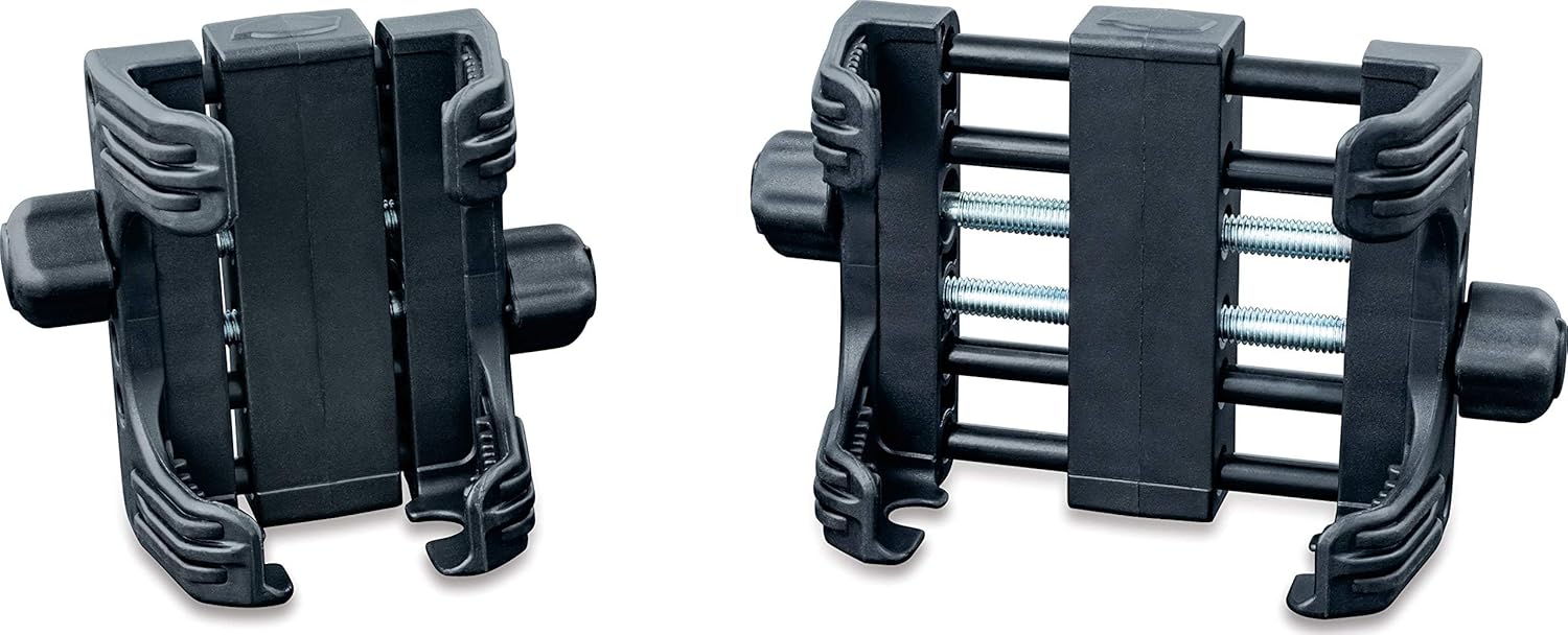 The Kuryakyn 1693 motorcycle handlebar accessory and Tech-Connect cradle device holder provides a secure, universal holder for your accessories. Dual screw clamping allows you to quickly and securely hold devices such as GPS and phones; integrated rubber pads eliminate slippage. Includes (1) black, standard size Tech-Connect device holder and (1) hardware kit including: (2) #8-32 x 5/8" phillips head pan screws, (2) #8 SAE flat washers, (4) 6" black nylon cable ties, and (1) thin foam pad; suggested tools for installation (not included): small phillips screwdriver. The Kuryakyn 1693 motorcycle handlebar accessory and Tech-Connect cradle device holder is multi-fit, holding devices measuring 1 5/8" to 3 5/8" wide.