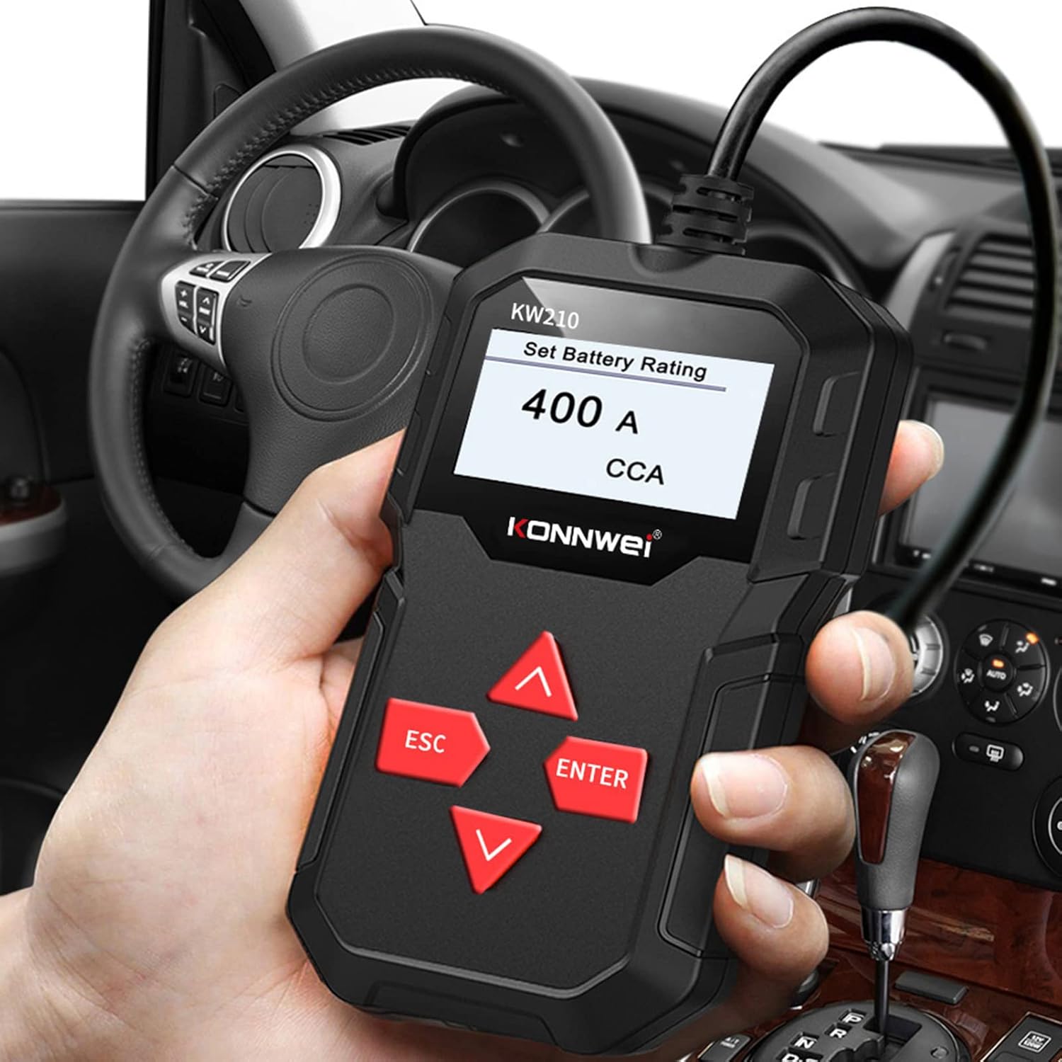 KW210 is the new battery tester upgraded from the old classic backup tester in the market, aiming at check battery health fast and accurately, as well as check the alternative working status. It's a professional vehicle diagnostic tool for checking your vehicle batteries. Support Languages: English, French, German, Russian, Dutch, Spanish, Portuguese, Italian. Specifications: Display:Color TFT LCD Screen. System Voltage:12 Volts. Input Voltage Range:8V-16V. Power Requirements:No internal batteries required. Power on when hooked up during testing. Operating Temperatuer:0℃-50℃. Storage Temperature:-20℃-70℃. Package size:18.3 * 15.2 * 5.3cm Package weight:300g Application: Use to test a wide range of 12V batteries (Starting,Deep Cycled and Marine) of Wet(Flooded),VRLA or Maintenance Free (MF),Sealed Maintenance Free (SMF),Absorption Mat(AGM),EFB and GEL Cell. The major battery standards CA,CCA,BCL,MCA,JIS,SAE,EN,GB,DIN and IEC are supported. Measure Standard: CCA:100-2000. BCI:100-2000. CA:100-2000. MCA:100-2000. JIS:26A17-24SH52. DIN:100-1400. IEC:100-1400. EN:100-2000. SAE:100-2000. GB:100-1400. Package list: 1 x Battery Tester Unit 1 x USB Cable for upgrade and print 1 x Box 1 x User Manual