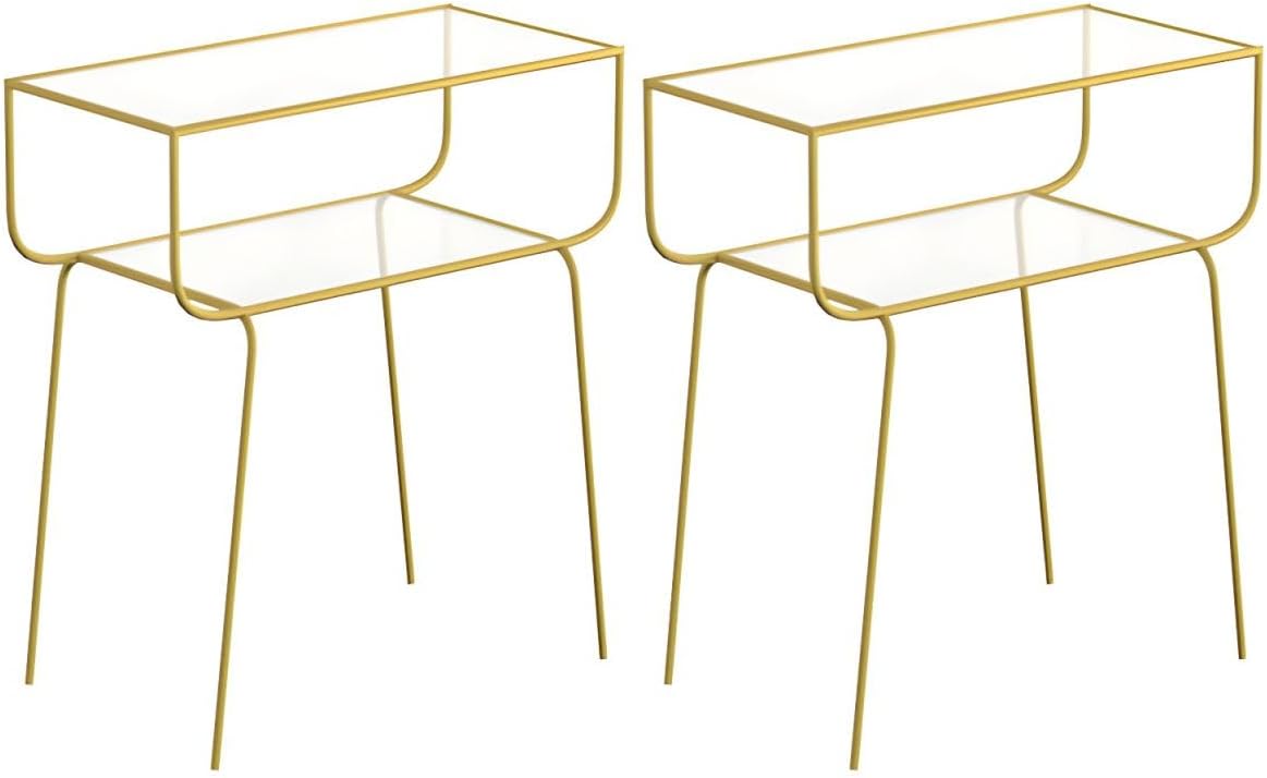 Industrial Metal Nightstand Glass Top Night Table with 1 Shelf ,23.6" TallNightstand that is crafted for the modern home, this elegant piece comes with various finishes that effortlessly blend with diverse bedroom themes. It's perfect for storing your nightly essentials, from books to bedside lamps. It is durable and constructed with stable material and has no foul smell. What's Included:Color: Black ,White ,Gold ,Light GoldStyle: IndustrialProduct Type: Open StorageFrame Material: IronCountertop Material: GlassPurposeful Distressing Type: No DistressingNumber of Items Included: 1 Piece ,2 Piece SetLength: Narrow (Under 21 in.)Height: Standard(23-28 in.)Weights & Dimensions: Overall Length - Side to Side: 19" (49 cm)Overall Width - Front to Back: 13" (33 cm)Overall Height - Top to Bottom: 23.5" (60 cm)Features: Feature: Glass TopFloating Shelf: Non Wall MountedDrawers Included: Drawers Not IncludedShelves Included: Shelves IncludedNumber of Shelves: 1Adjustable Shelves: Non-AdjustableLegs Included: With LegsCabinets Included: Cabinet Not IncludedNote:Assembly is easy with provided step-by-step instructions. Care instructions: wipe clean with a clean dry cloth. Avoid using harsh chemicals. Pictures are for illustration purposes. All decor items are not included in this offer.