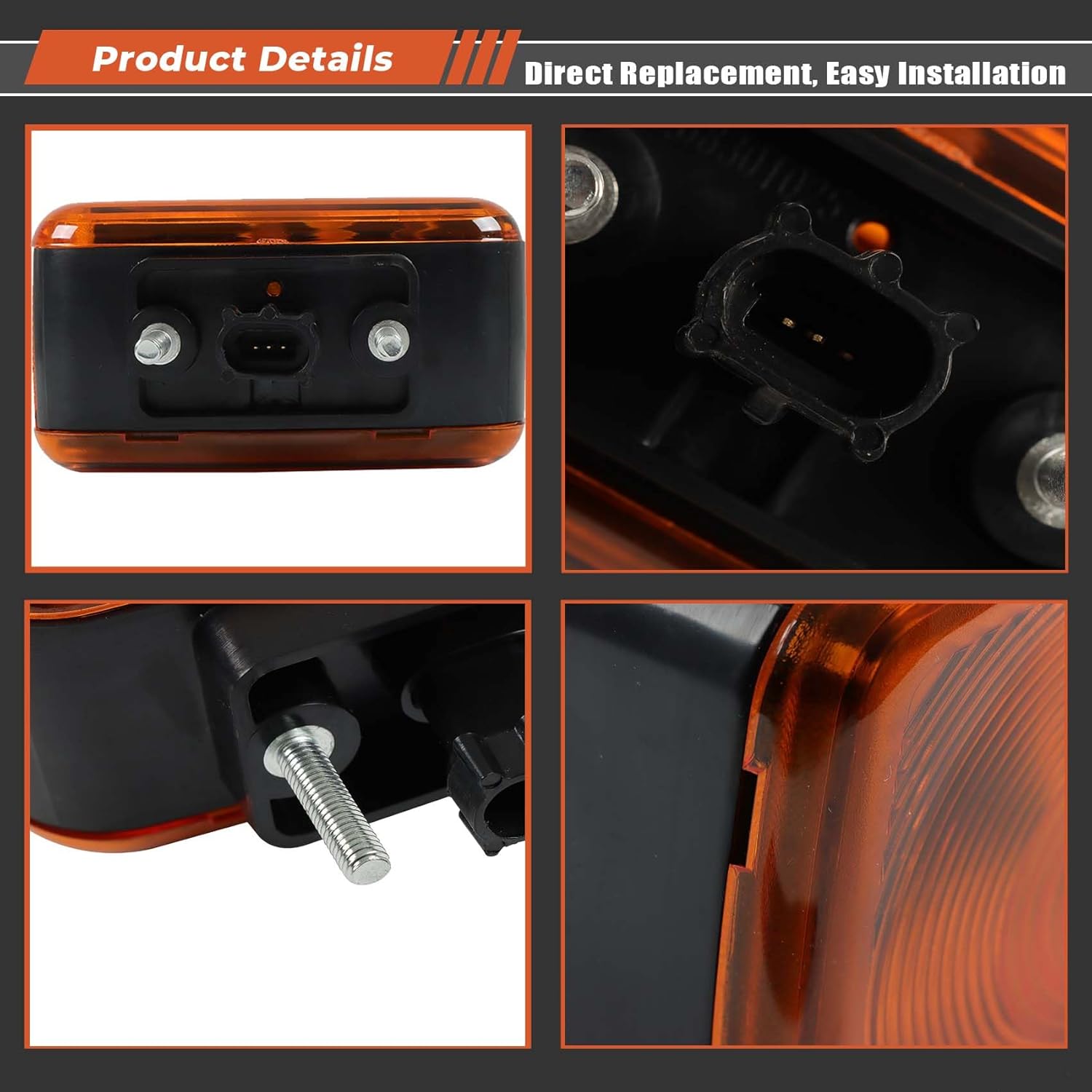 Fitment:Replacement for C4500/C5500/C6500/C60/C70/C7500 Kodiak 1990-2009Replacement for C4500/C5000/C5500/C6000/C6500/C7000/C7500 Features:Type: Turn Signal / Side Marker Light AssemblyLens Color: YellowLens Material: PlasticHousing Color: Orange, BlackBulb Type: Incandescent(Not Included)Wiring Harness Included: NoInstallation Instructions: Not IncludedPlacement on Vehicle: Front, Left/RightPart Number: 15148648, 15565531, 19420346Package Included:1x Turn Signal Lamp Side Marker Light Assembly
