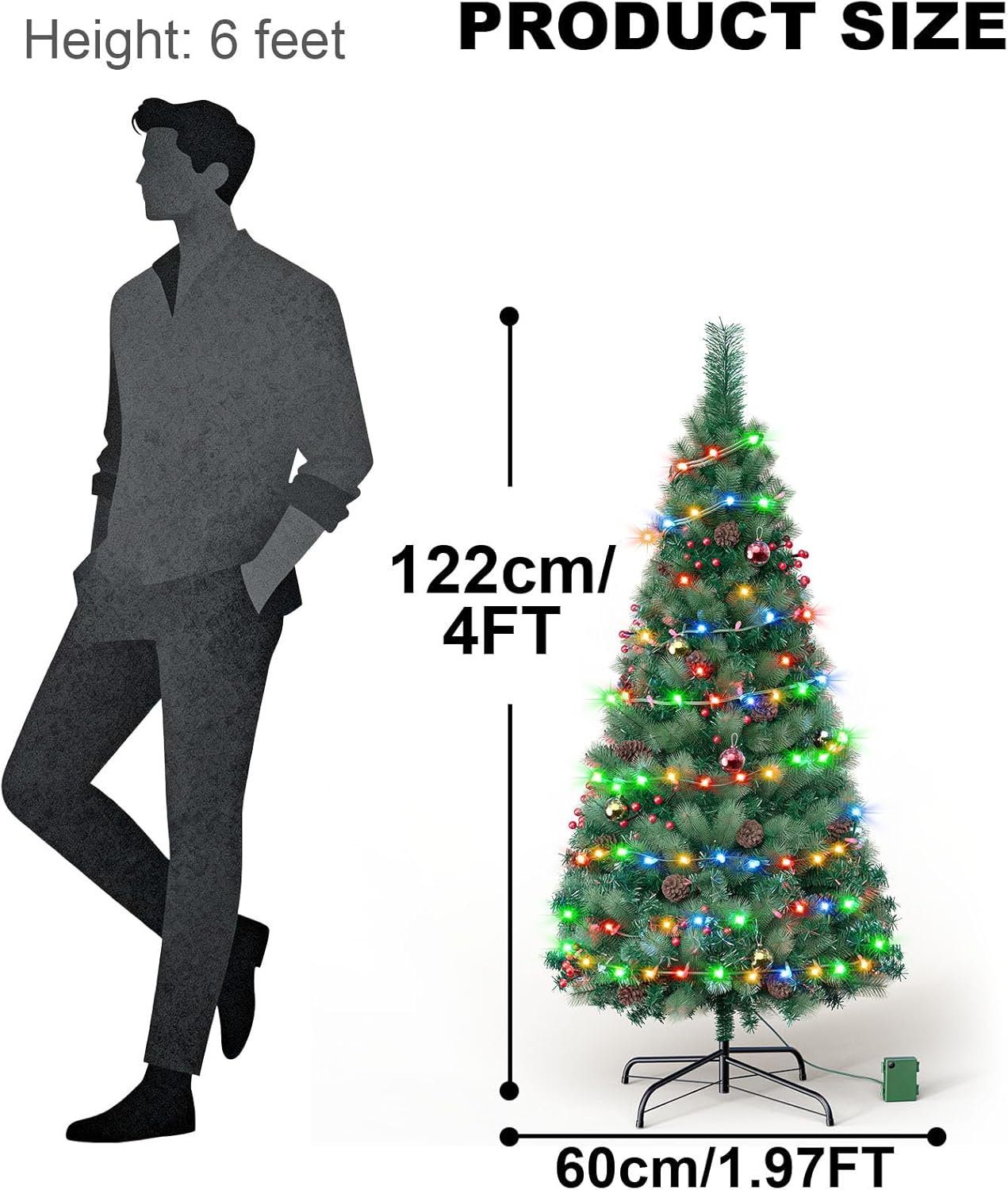 | Included Components | 1×4FT Christmas Tree, 1×70LED Multicolor Warm White Light, 1×instruction manual, 1×metal foldable stand, ornaments |