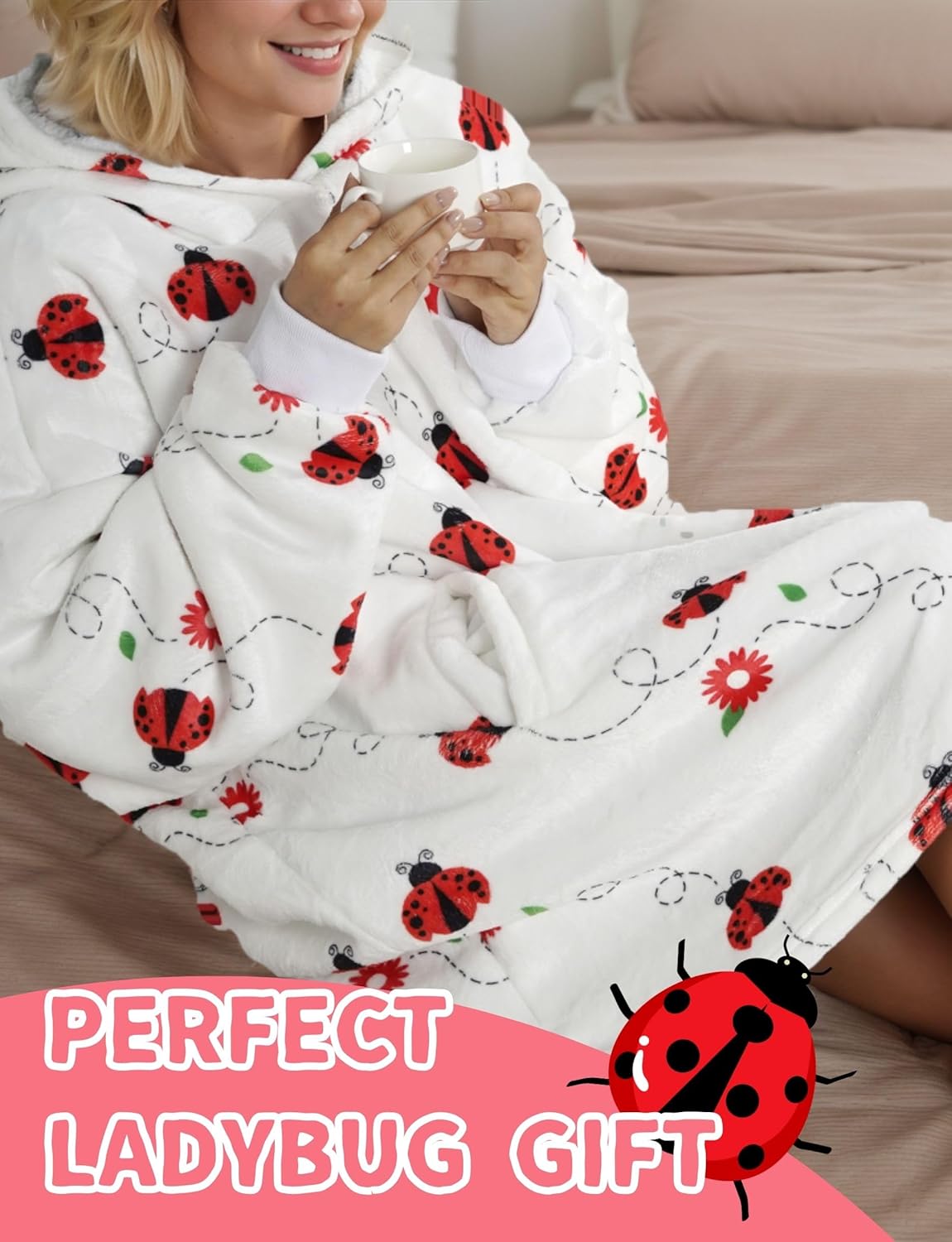 Huglanket Ladybug Gifts for Women, Blanket Hoodie Gifts for Ladybug Lovers on Birthday, Christmas, One Size - Full Printed