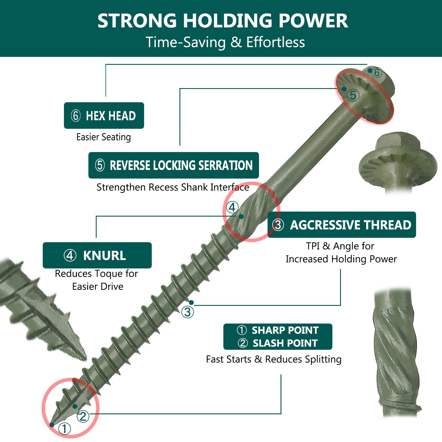 | Set Name | Heavy Duty Structural Timber Screw Set (60-Pack, #14 x 5 inch) |