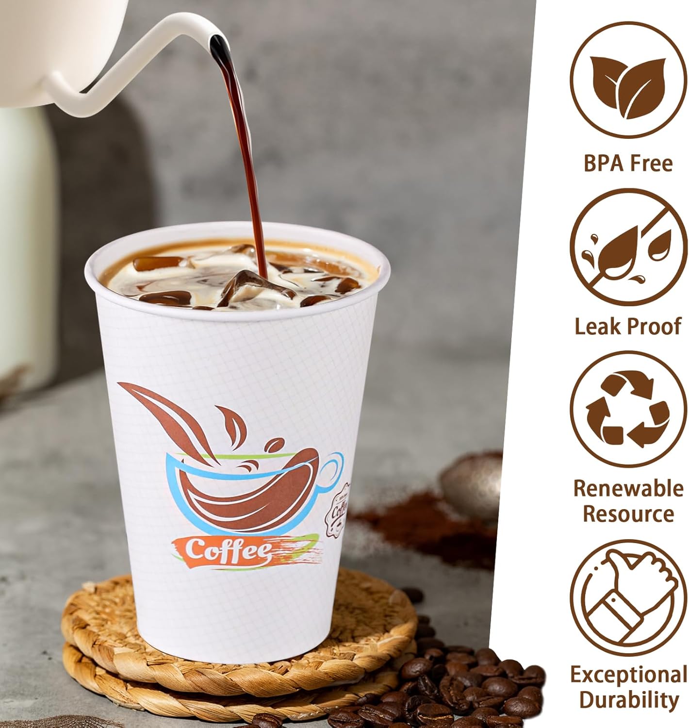 • Disposable and Stylish: The disposable design of paper coffee cups simplifies cleanup; a boon for home parties or after a busy day at the food truck; Coffee cups disposable with eye-catching prints make your drinks stand out; adding charm to any gathering