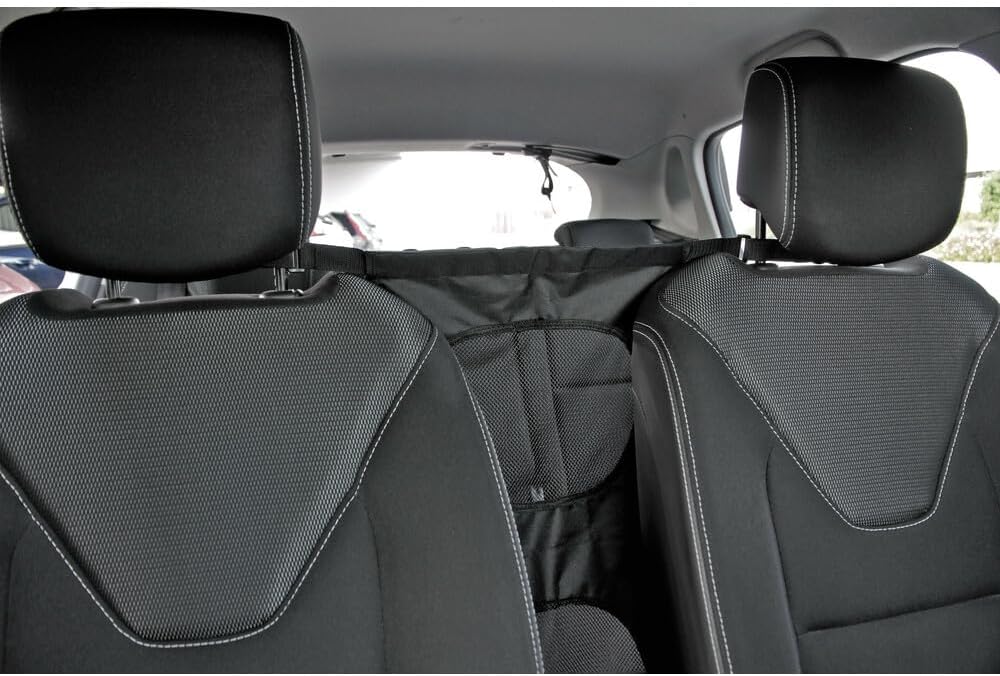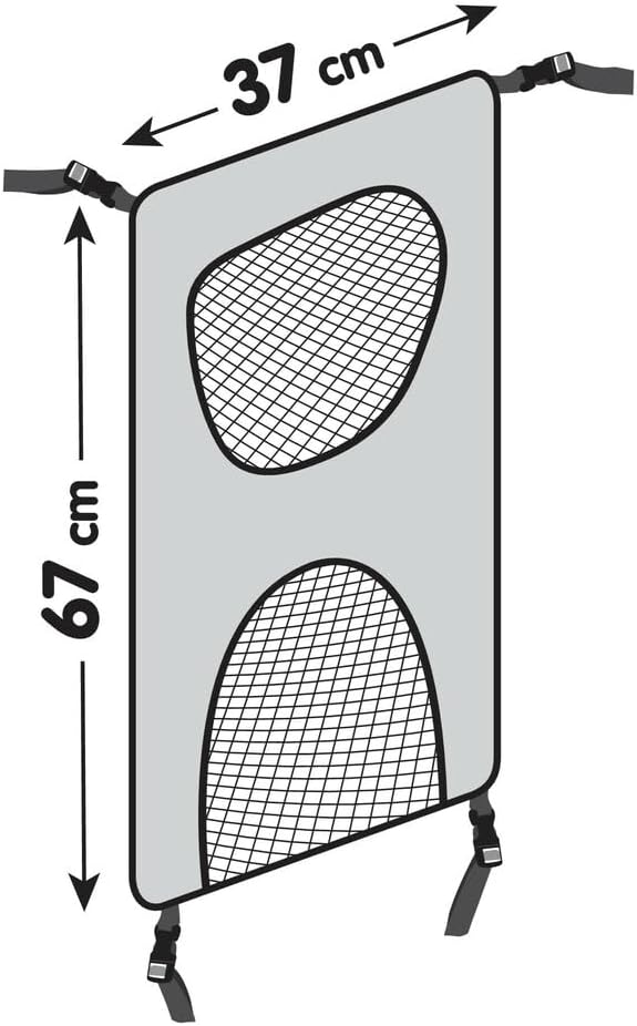 Size: 37x67 cm. Ideal for all car models. Prevent your dog from accessing the front seats of the vehicle as it prevents and dangers to driving. Installs between front and rear seats.Folds up and saves space.Attaches to headrests and car seats.