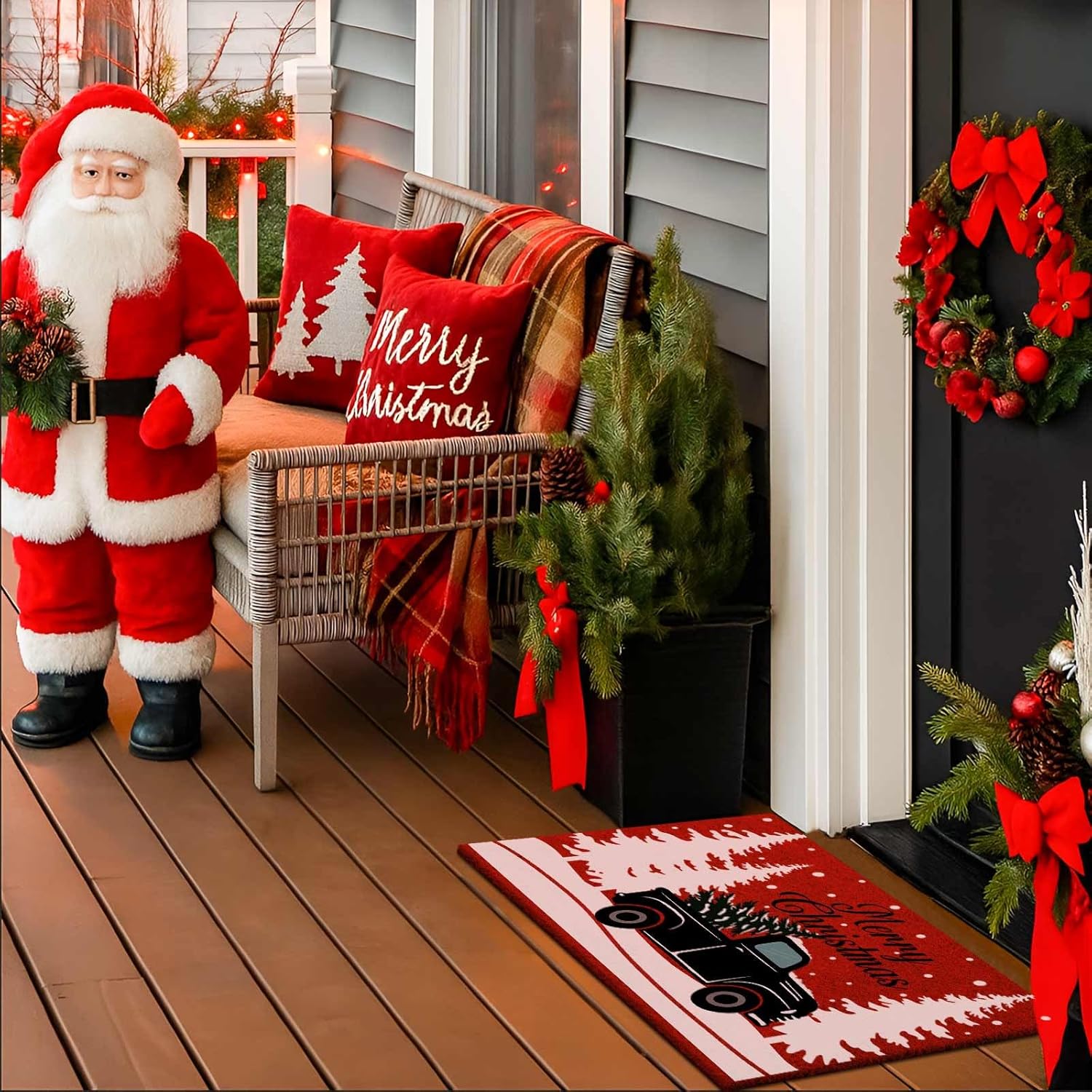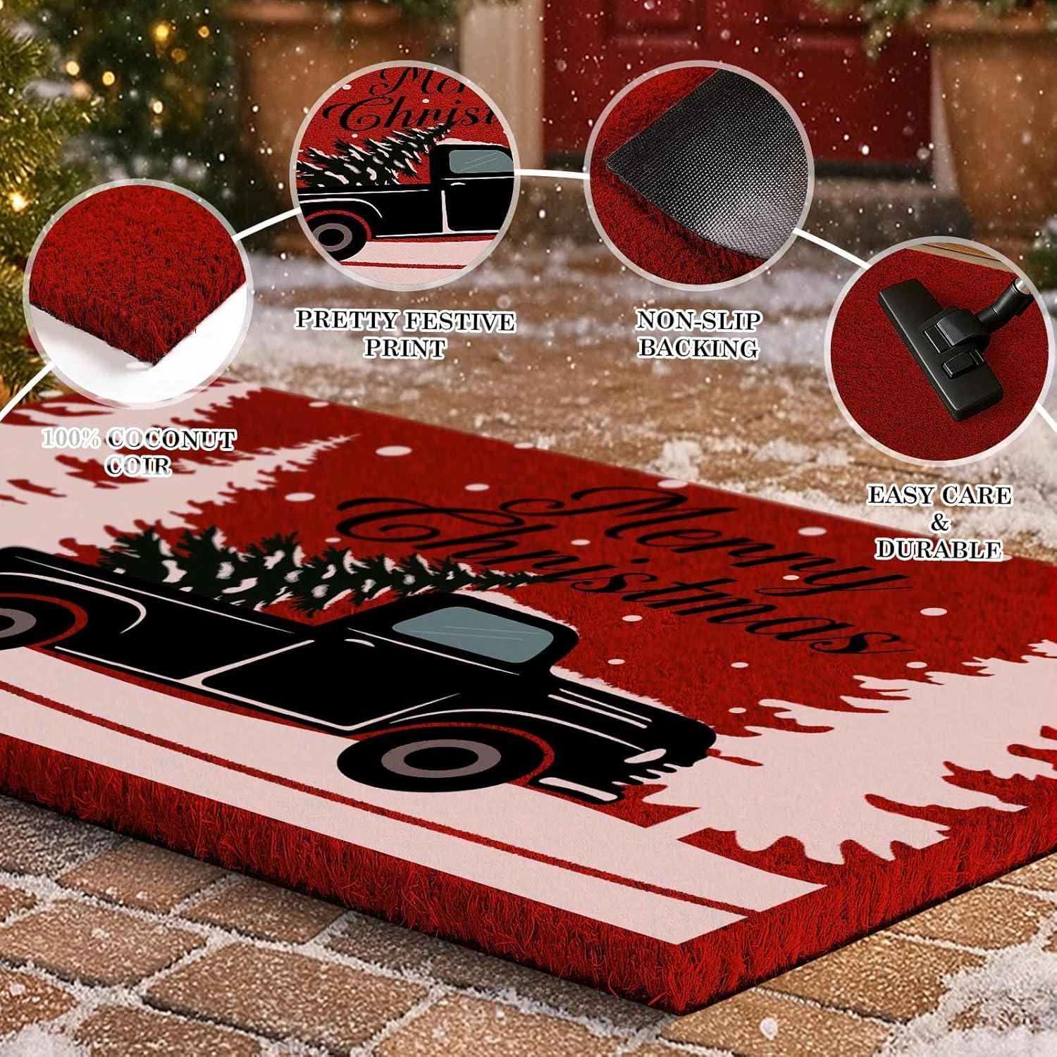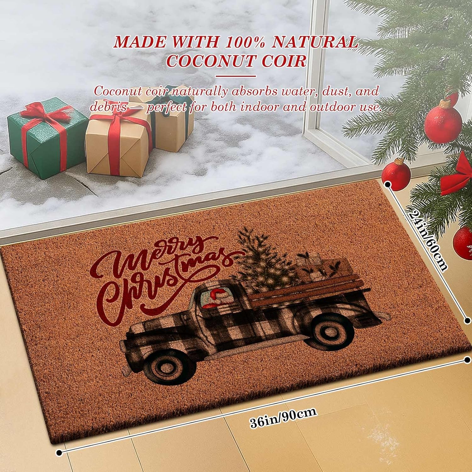 Christmas Welcome Natural Coir Door Mat, Truck Lorry Large Coco Front Door Outdoor Doormat Outside Entrance Porch Non Slip Rubber Rug Winter Xmas Farmhouse Decor (Brown, 36x24 inch)