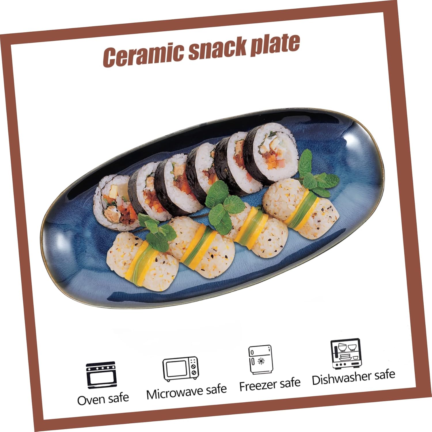 Package Include 1 x Ceramic Sushi Plate Characteristics - Material: Ceramic ceramic serving tray. -Note:There may be color differences between different batches serving platter porcelain. -Product Info:Sushi plate - Size: 34.7x16.8x3.5cm porcelain platter. - Color:Blue porcelain tray. - Perfect for family gatherings, parties, weddings, bars and restaurants, etc ceramic snack platter ceramics sushi plate - A versatile gadget to serve for snacks, nuts, dried fruits, appetizers, sauces japanese ceramic sushi tray. - Made from premium ceramic, detail and design Sushi Serving Tray. - The plates features with sweet color, design, multi-function and jewelry container plate - An your friends, families salad plateGoods Descriptionserving tea tray More eye-catching and attractive than the routinist storage plates in the current market.fruit serving dish Have you aesthetic fatigue to your home storage tray? Want to try some different plate to hold your food or fruit? Try our this ceramic dinner plate, very chic and stylish.sashimi tray You can use it for any occasions such as everyday use, family gatherings, parties, weddings, bars and restaurants