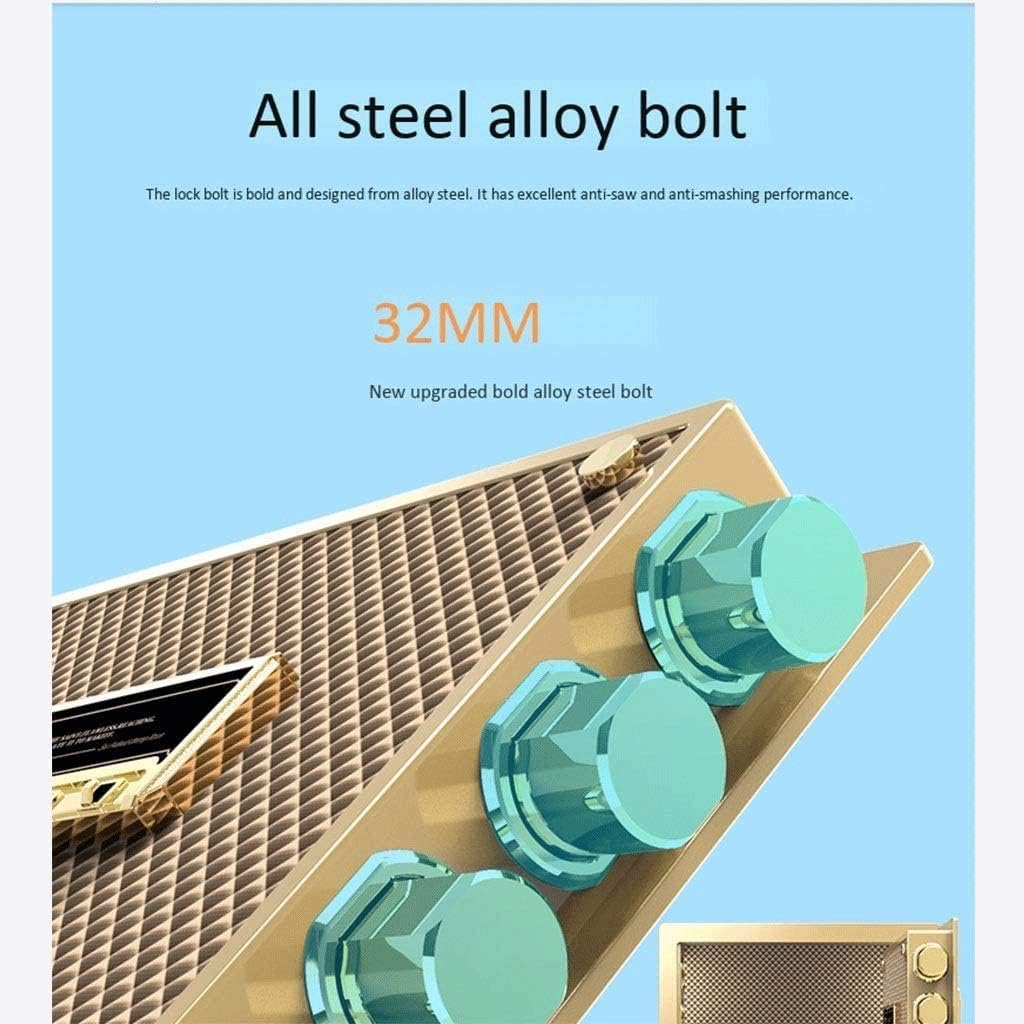 Feature:* Size: 35*25*25cm or 13.7*9.8*9.8 *Color: gold, black, coffee gold*mode: electronic password, key* Product weight: 12kg*Alarm function: Yes*Fireproof and proof: no*Fixed installation: pre-drilled to the floor or wall* Installation steps: 1. Install 2 mounting holes on the wall with a rotating machine;2. Align the rear mounting hole of the safety hook with the wall mounting hole, then insert the expansion screw to fix the safe to the wall;3. Installation is complete;In the package are:1 *Safe2 *emergency key2 * Expansion bolt4 * 5AA battery1 * emergency battery box1 *InstructionSolid partitions do not require disassembly and assembly, and the joints are tight