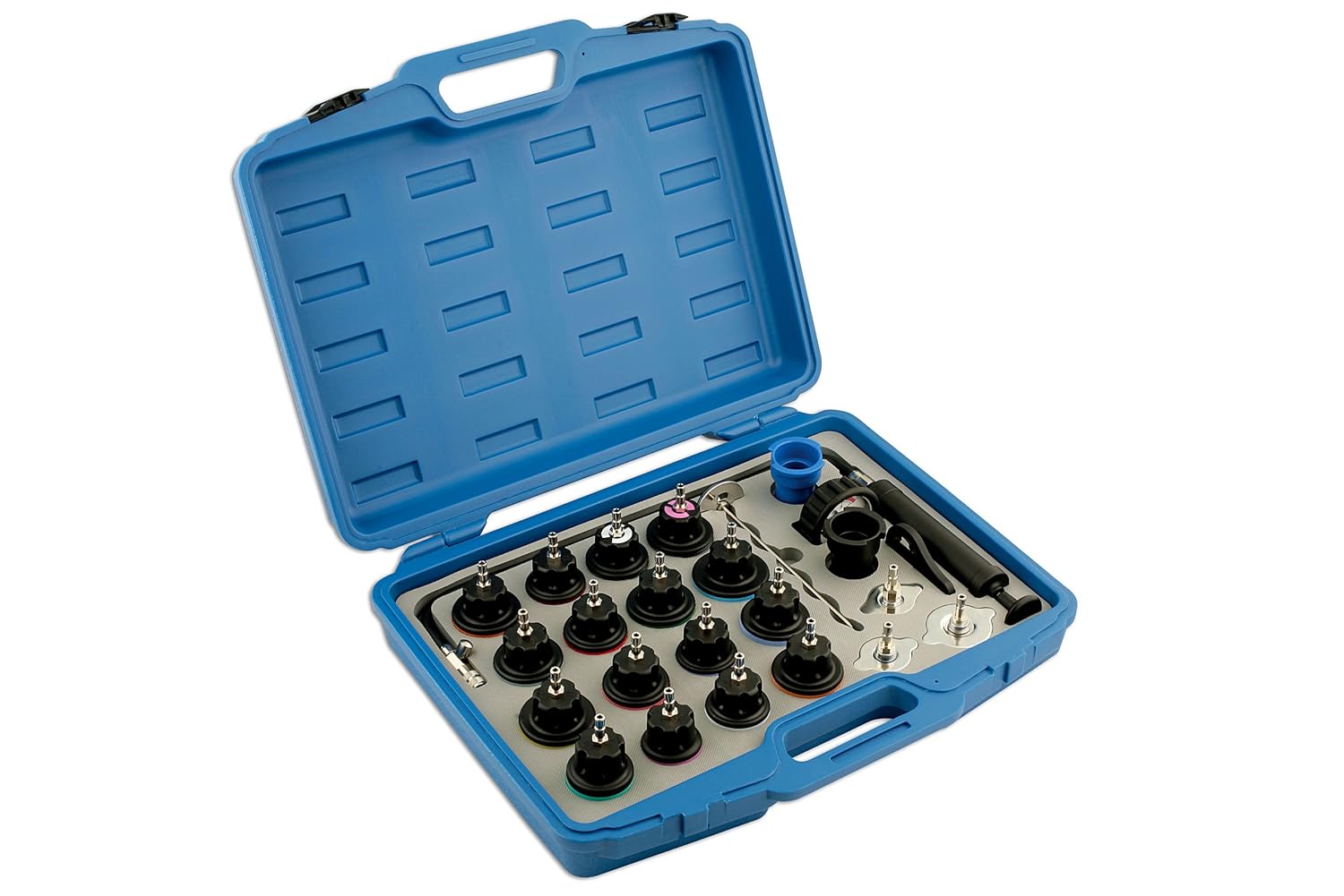 A comprehensive cooling system pressure testing kit for universal use. Locates system leaks from header/expansion tanks and fittings, head gasket, radiator core, heater matrix, water pump, hoses, pipes, etc. A British tool company based in Warwickshire, United Kingdom. Laser Tools draws on years of experience to introduce quality products which offer real value for money. All our products are responsibly sourced both from trusted ethical partners across the world PLUS (uniquely as an automotive tool brand) our own manufacturing base in the UK. Combining our British manufacturing, our years of experience and vast expertise in the automotive sector helps us achieve our aim of bringing high quality tool solutions first to market and being No.1 choice for many professional mechanics.