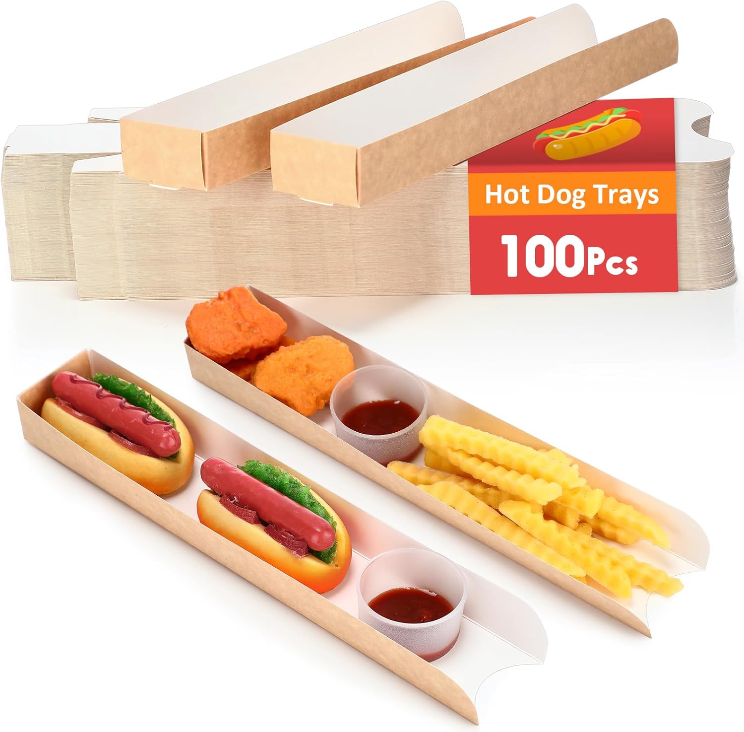 Features: Safe and sturdy: No need to worry about health safety, as our food trays are crafted from food-grade materials. The sturdy construction also means they can directly touch food without breaking, ensuring your guests can focus on enjoying their meals with peace of mind. Impress Your Guests: Distribute hot dogs stylishly with these containers. Amid the fun of the event, these trays will stand out and impress your guests, ensuring your hosting skills are remembered. Specifications: Material: cardboard Color: pink Size: about 11.8 x 2 x 1.2 Inch/ 30 x 5 x 3 cm Package includes: 300 x Hot dog trays Notes: Manual measurement, please allow slight errors on size. The color may exist a slight difference due to different screen displays