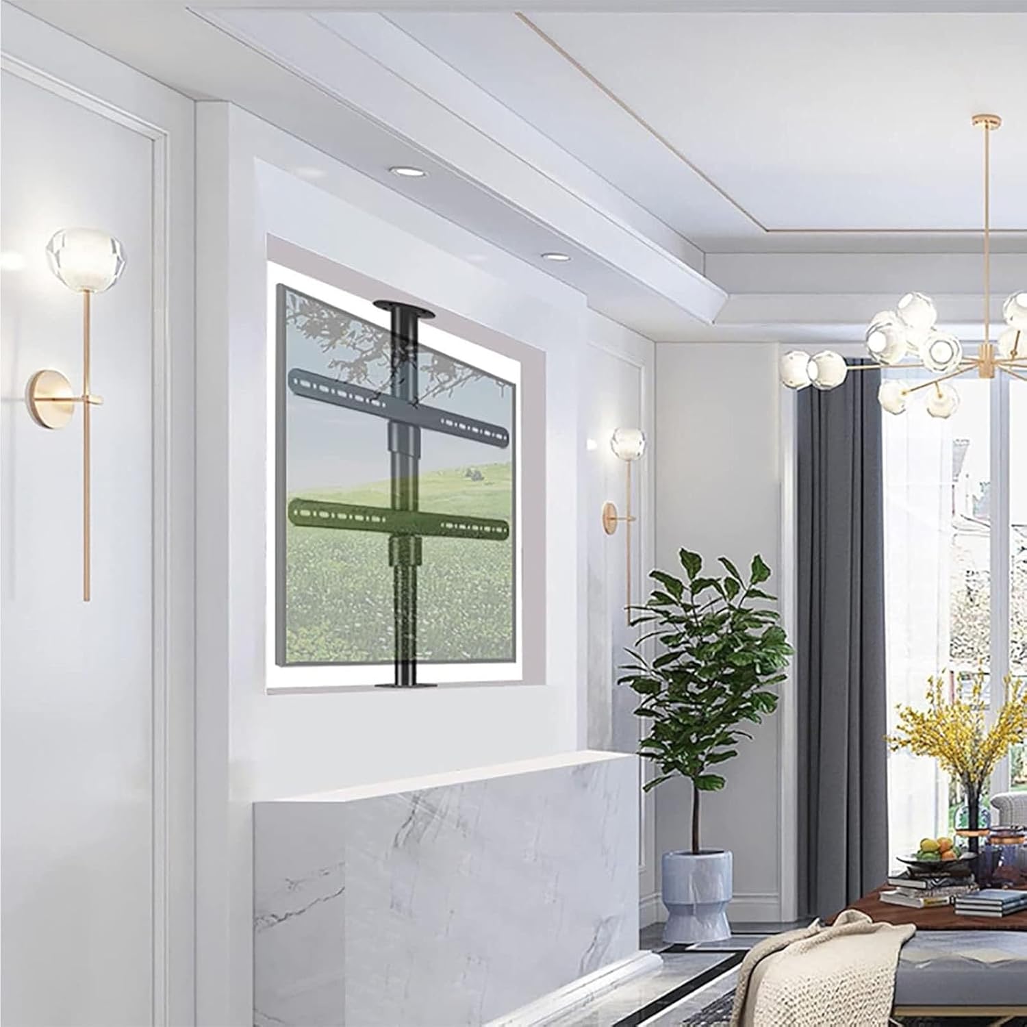 Rotating TV cabinet as you wish: - Electric TV mount is perfect for ,restaurants,fitness centers,grocery stores,dentist and doctor offices,home installations and more! Wide compatibility - This LCD TV 360 degree rotating e floor stand is specially designed for home life and office. The height adjustment function can best meet your needs,giving the TV greater flexibility and better viewing experience for a perfect viewing experience. Electric TV stand specifications: Material: cold rolled steel plate Applicable range: 32-75 inches Color: black Height adjustment: 59.5-85cm,109.5-135cm,170-205cm,200-295cm Product load: 0-45.5kg Left and right rotation angle: 360° Adapt to hole spacing: within 600*400mm Scope of application: office,living room,balcony,restaurant,kitchen Warm