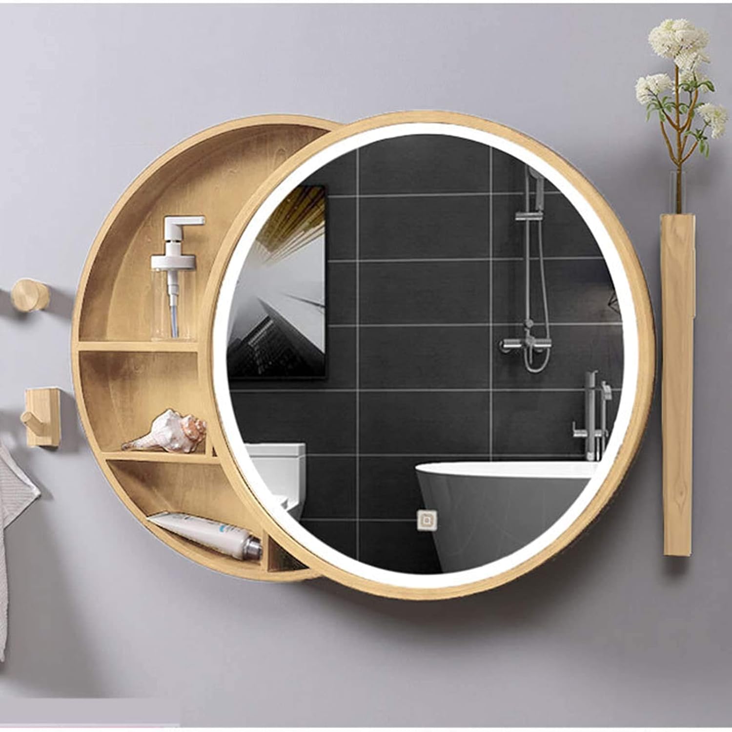 Round LED Lighted Bathroom Mirror with Anti-Fog Features: Simple Elegant Style Sleek round mirror, the clean modern lines make it a beautiful timeless home decor artwork. Excellent Quality & Easy Installation Comes with matching plug and screws, you can hang it up in a few minutes. Minimalist Home Decor Beautiful decorative wall mirror for your living room, bedroom, bathroom, powder room or hallway and more. Specification: Frame Material: Wooden Cabinet Frame Color: Walnut Mirror Size: 50cm/19.7in, 60cm/23.6in ,70cm/27.5in(Diameter) Package Content: 1 x Round Mirror