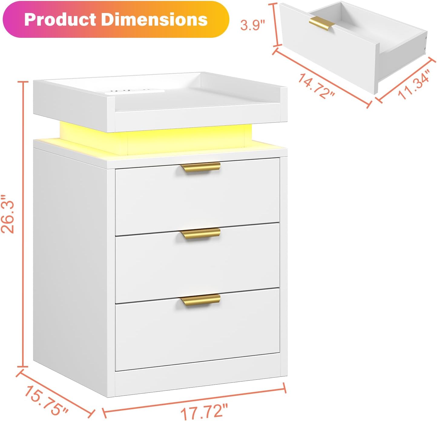 | Model Name | White LED Nightstand |