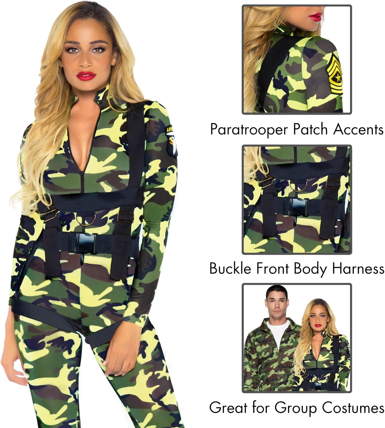 2 Piece Pretty Paratrooper, includes zipper front camo spandex jumpsuit and matching body harness. Complete your look with Leg Avenue cropped gloves. Leg Avenue has been trusted by individuals for decades. Products that are made of quality material and designed to withstand the toughest environments. Trust the Brand that others in the field use and don't settle for less.