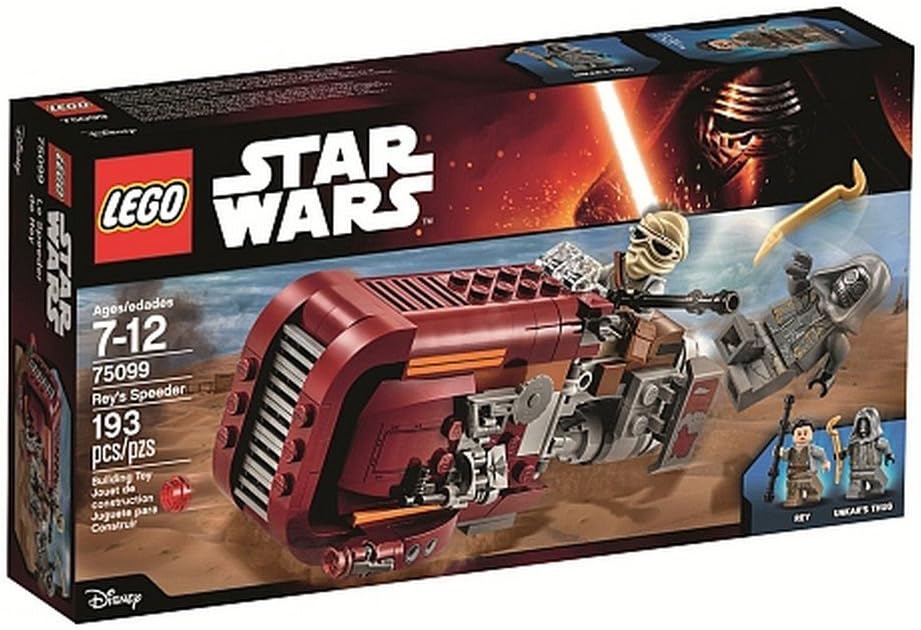 Product Description Speed into action on Rey's Speeder! Collect Rey's Speeder with dual stud shooters, opening storage hatch and side-mounted bag, blaster, buzzsaw, electrobinoculars and more. Hover into action on Rey's Speeder! This cool LEGO Star Wars toy has everything Rey needs for scouting the surface of a desert planet, including dual stud shooters, opening storage hatch and side-mounted bag, blaster, buzzsaw and electrobinoculars. There's also a detachable sled with space for a minifigure when Rey must make a quick escape down the desert dunes! Recreate your own fantastic scenes from Star Wars: The Force Awakens. Includes 2 minifigures: Rey and Unkar's Thug with a crowbar. Brand Story By LEGO