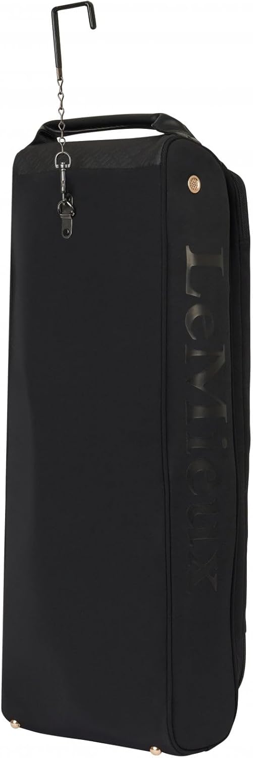 This luxurious bridle bag stores, protects and carries one bridle in style. An internal hanging bracket and clip keeps your bridle secure, with super soft quilted faux fur lining to travel your tack in comfort. Generous zip openings, wipe-clean faux leather panels and mesh air vents prevent moisture build-up. Carry it with ease using the durable rolled faux leather top carry handle. There's also a strong hook and chain for hanging. The front zip pocket and multiple internal pockets provide ample places to store extra accessories. The Luxe Bridle Bag coordinates with the Luxe Luggage range, ideal for the competitive rider.