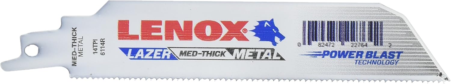 Product Description LENOX LAZER Bi-Metal Reciprocating Saw Blades provide fast and easy heavy-metal cutting, with T2 technology's special tooth design to deliver longer blade life and faster cutting. Optimized for higher performance, these metal saw blades have a reinforced tooth design to help ensure higher performance in the most demanding jobs. Each saw blade cuts straighter and wider than conventional blades and are great for cutting structural steel and most other metals. From the Manufacturer The new Lenox Laser Recip. Blade is designed to cut pipe, structural steel and stainless steel. The patented tooth design increases blade life and cutting speed. The Laser blade is 40% wider for even greater strength, durability and straight cutting. This blades is ideal for vehicle extrication and emergency work.
